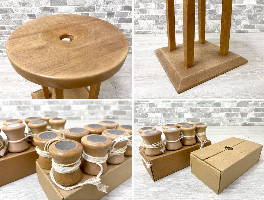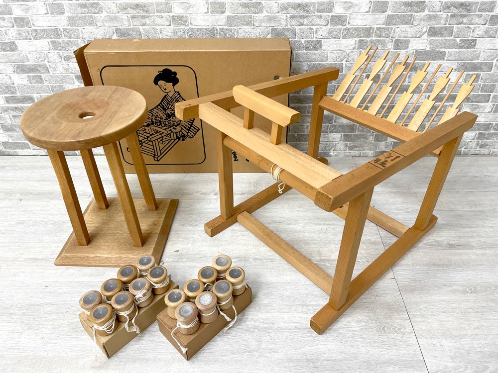 こちらは組紐を編む為の『綾竹台』と『丸台』、錘のセットです。(丸台は流派不明です。)