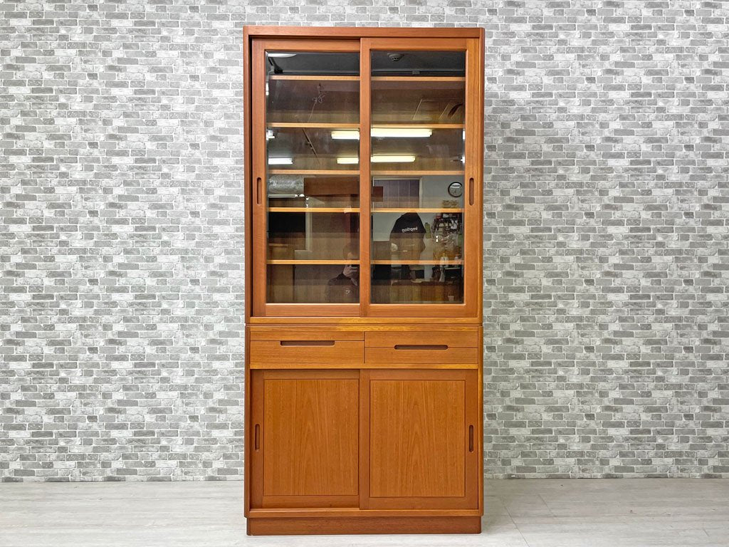 日田工芸 Hita Craft チーク材 カップボード 食器棚 W90cm ベロ付 昭和レトロ ジャパンビンテージ 北欧スタイル ●