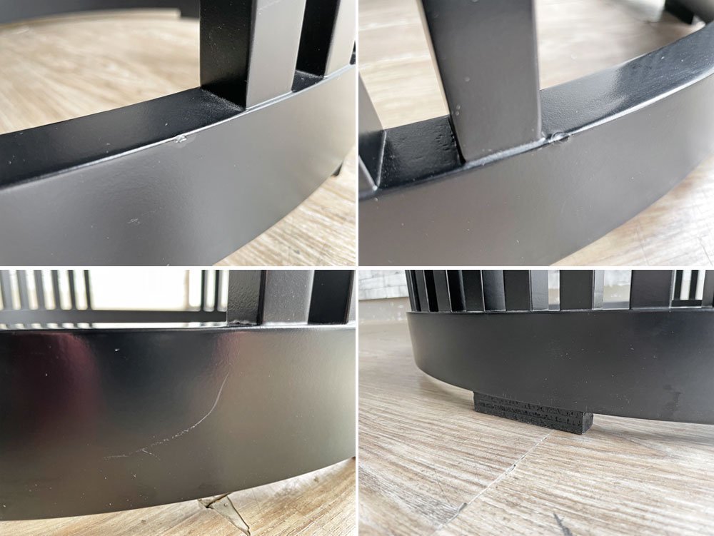 天板に薄っすらとした線傷が散見されるほか、縁や脚部に細かな打痕や擦り傷が見受けられます。しかしながら、極端に美観を損なうようなダメージはなく、中古品としては概ね良好なコンディションを保っております。