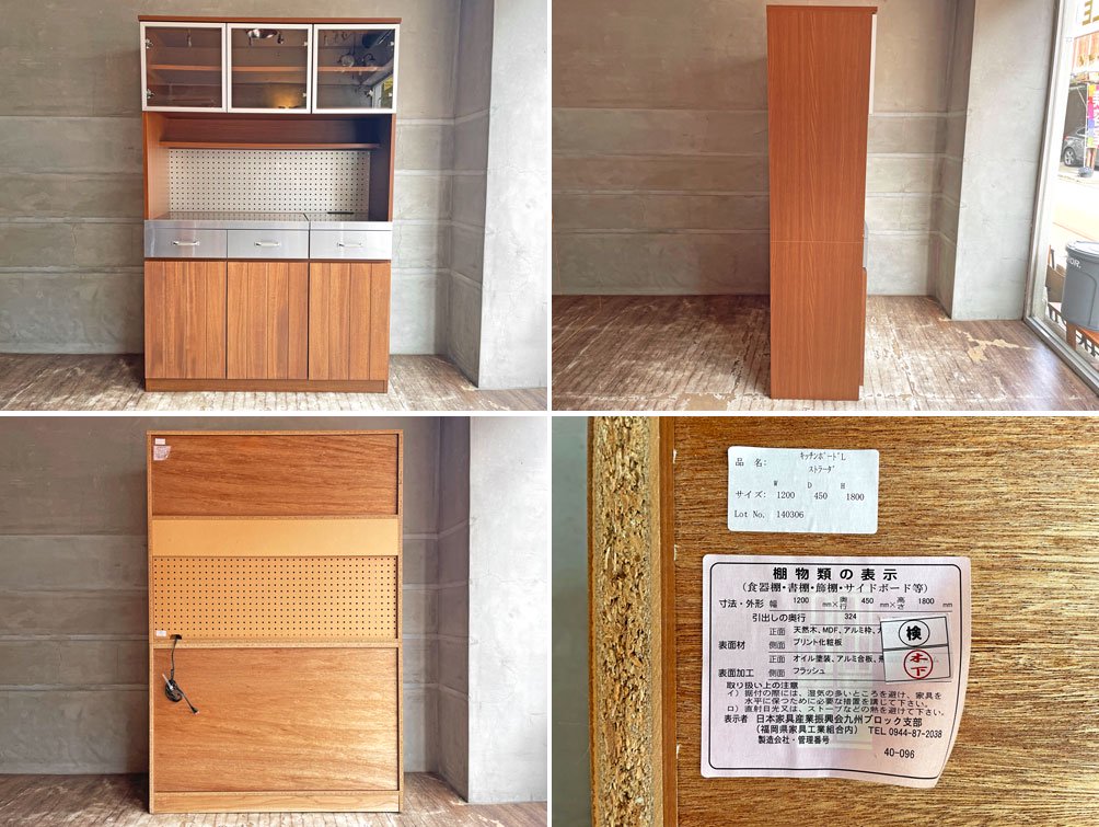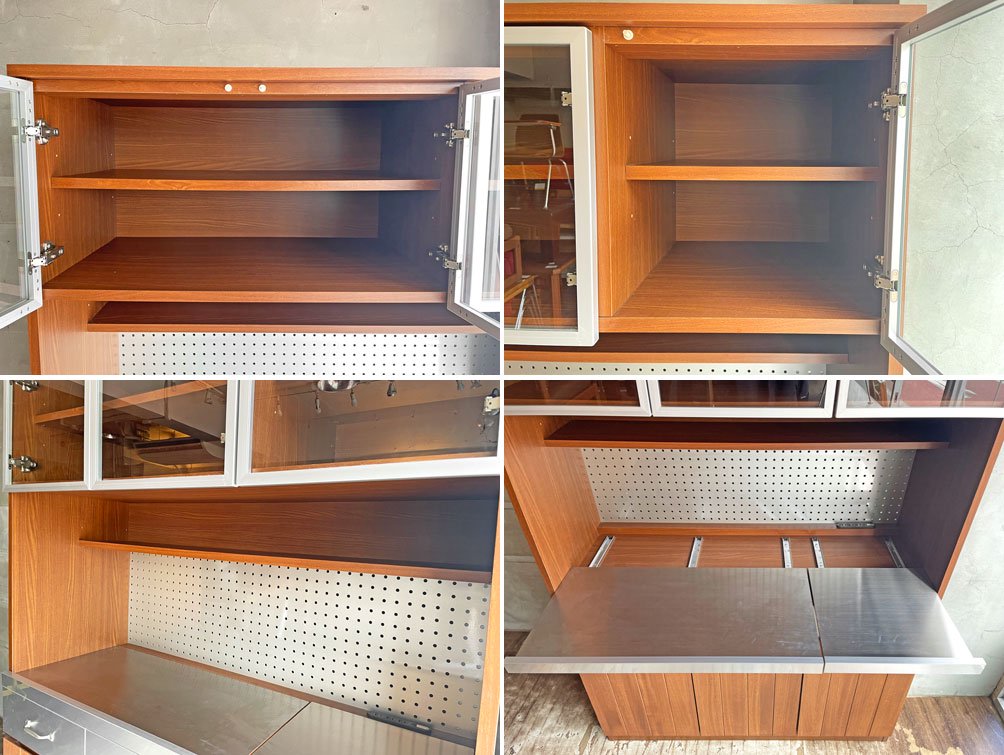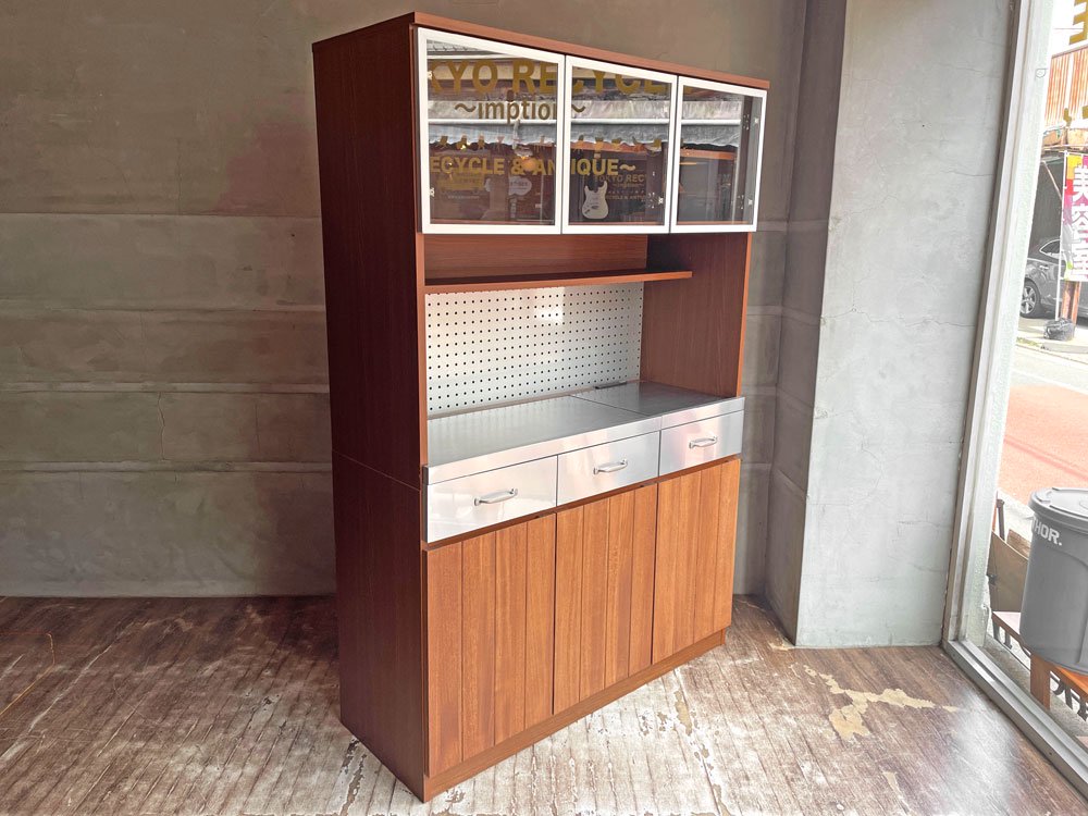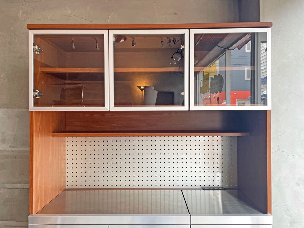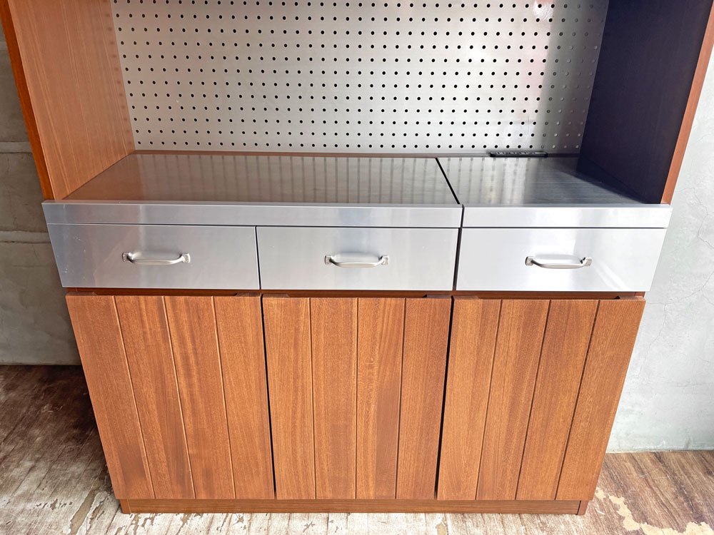 ウニコ unico ストラーダ STRADA キッチンボード レンジボード 食器棚 アッシュ材 × ステンレス張 W120cm オープンタイプ 廃盤 ♪