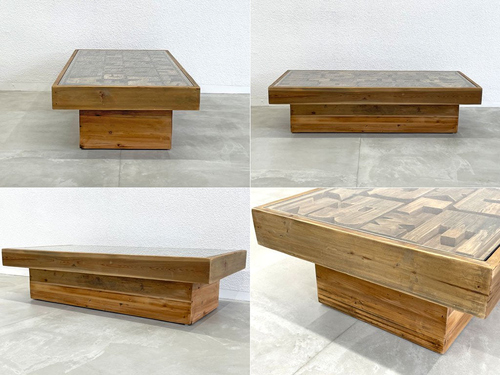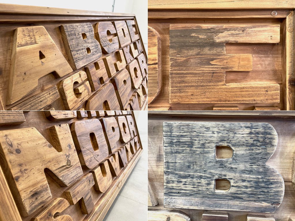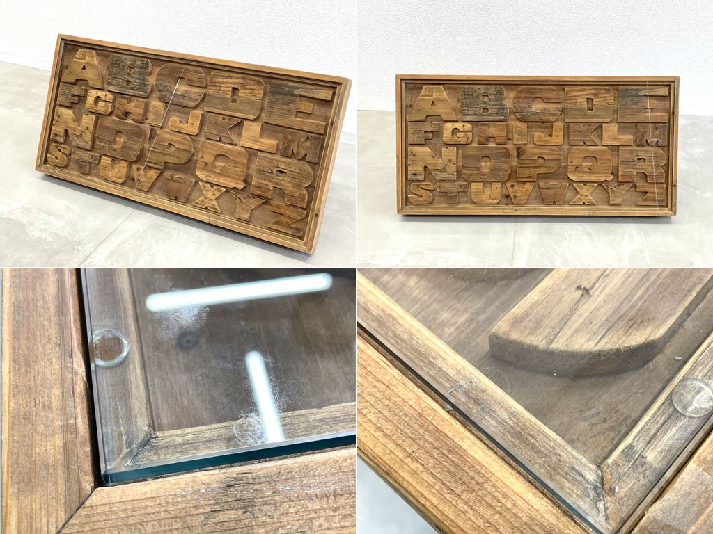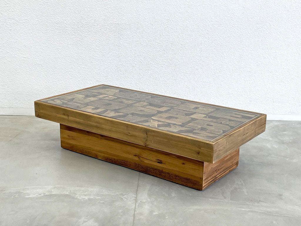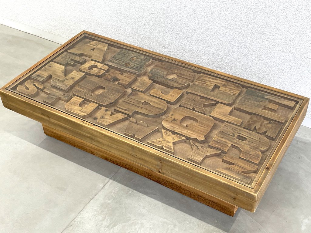大小異なるアルファベットの羅列が特徴的なこちらのセンターテーブルは、アンティークの印刷用文字盤をモチーフにデザインされており温かみのあるフォントになっています。
