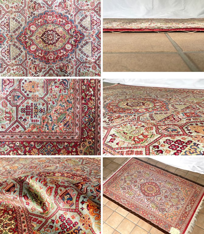 ペルシャ絨毯の中でも上等な絨毯を生産することで世界的にも知られる名産地”クム”産の絨毯となります。