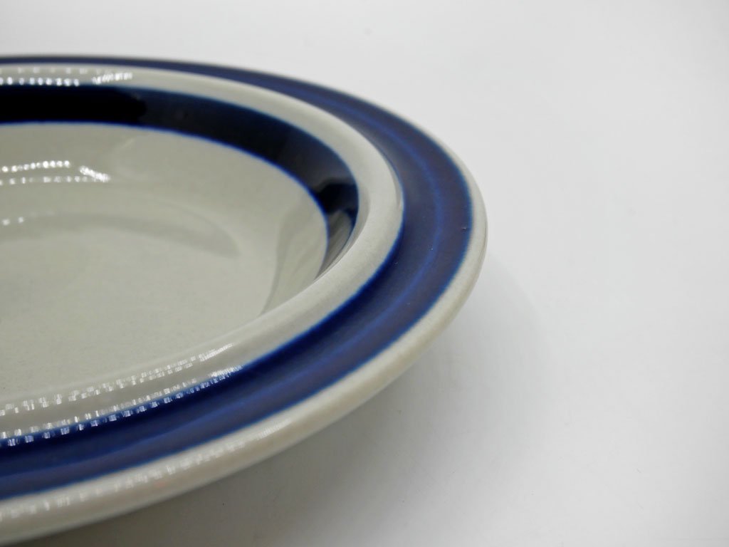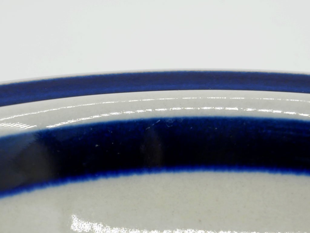 薄っすらとグレーがかったベースカラーに、深いコバルトブルーのラインが美しいシンプルなデザイン。スープボウルやシリアルボウルとして、日常使いにオススメいたします。