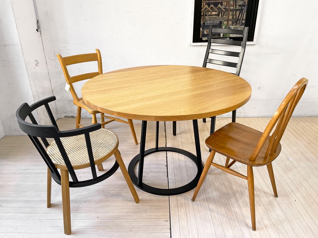 コチラはラウンド型の天板にサークル状のアイアンレッグを組み合わせた「MS2」ダイニングテーブルです。