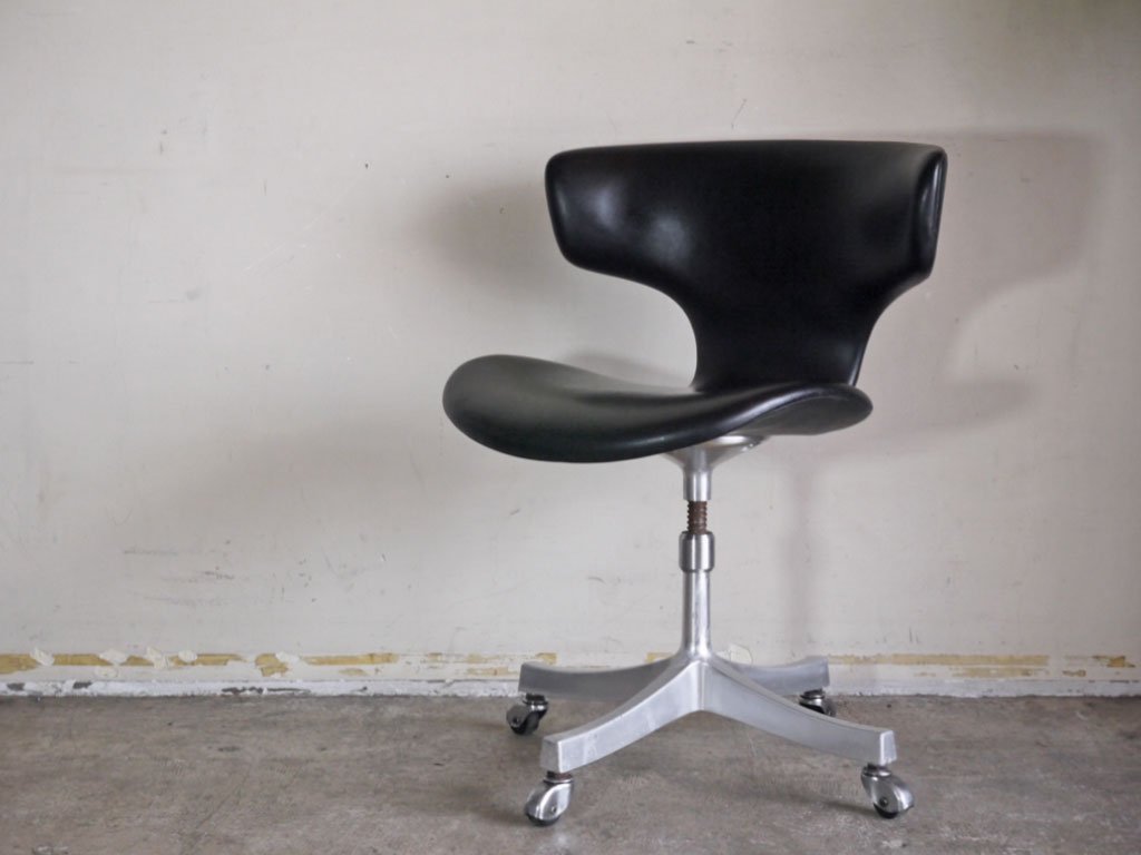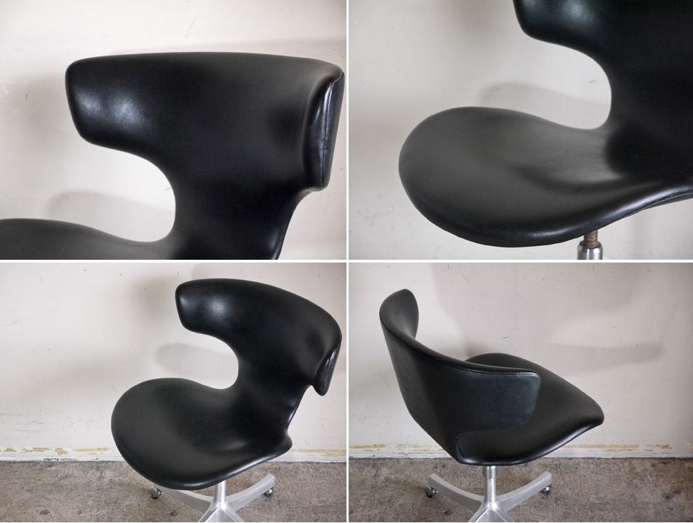 天童木工 Tendo ビンテージ カブトチェア キャスターベース PVCレザー ブラック 剣持勇 ジャパニーズモダン ミッドセンチュリーモダン ■