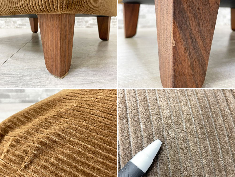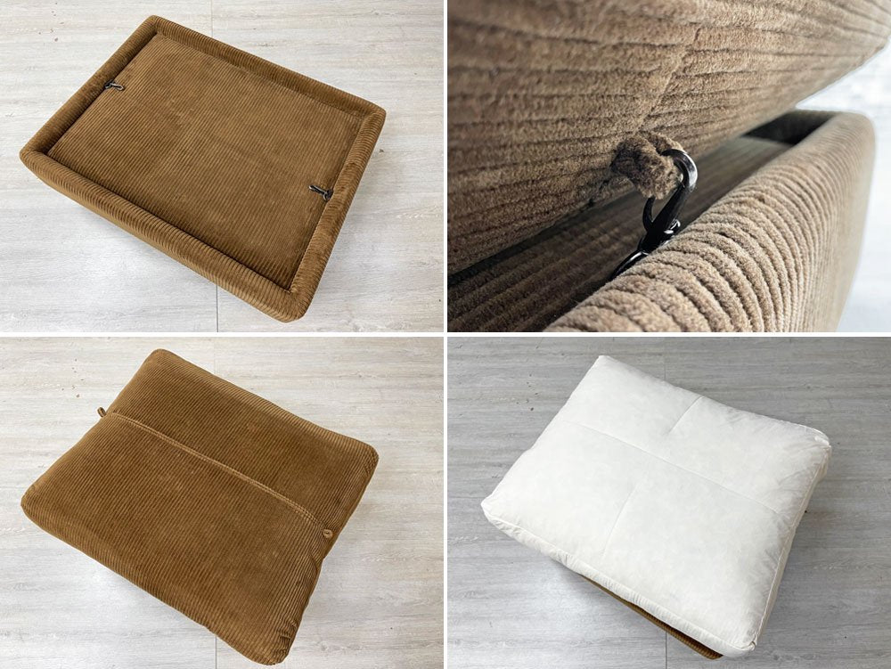 こちらは、同シリーズのFKソファとあわせて使いたいオットマン。ソファと同様に落ち着いたブラウンの色合いと、特徴的な凹凸のコーデュロイ生地を使用。足を伸ばしてよりゆったり寛ぎたい方にオススメです。