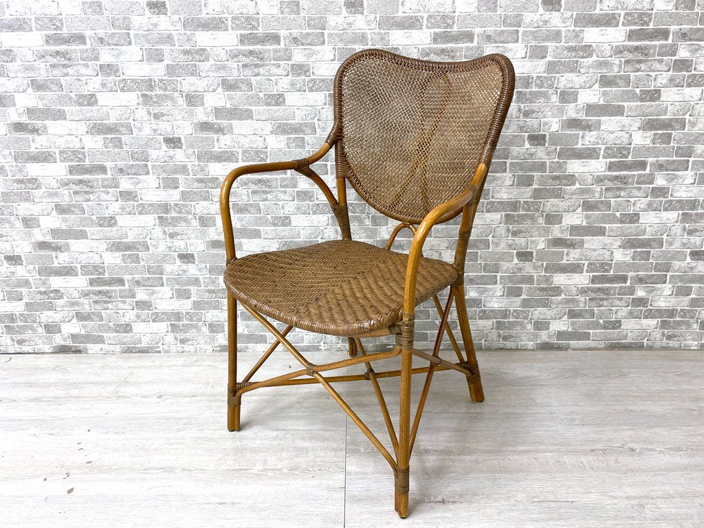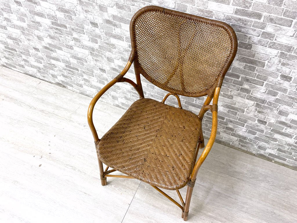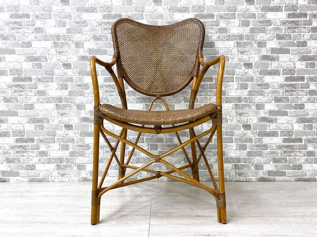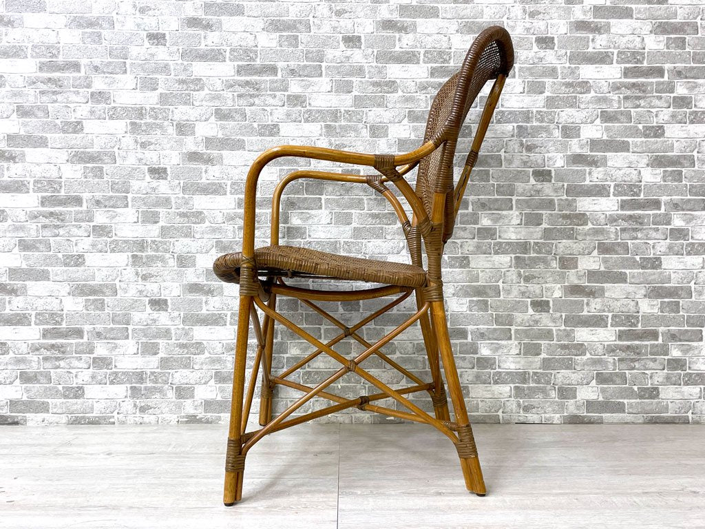 カザマ KAZAMA ニューアリビオアーム New Alivio Arm ラタン製 アームチェア ダイニングチェア 籐製 超軽量 約2.7kg アジアン 定価¥44,000- B ●