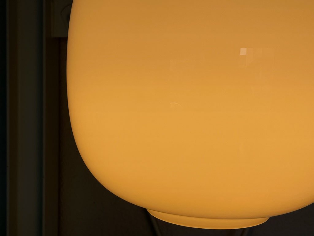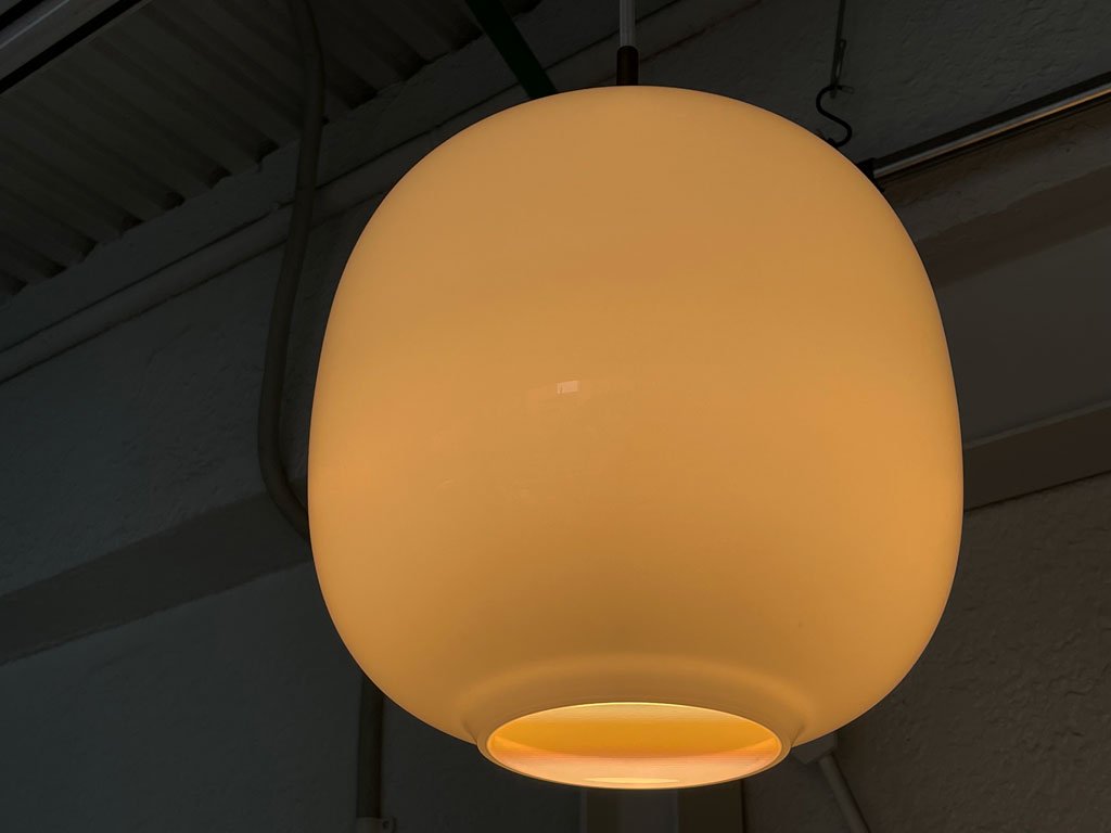乳白ガラスをクリアなガラスで挟んだ3層の構造により柔らかな透明感を表現。シェード全体を染め上げるように均一に広がる光が美しい名作です。