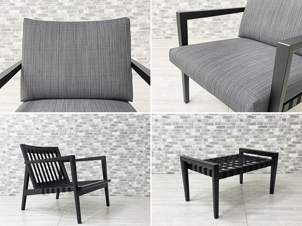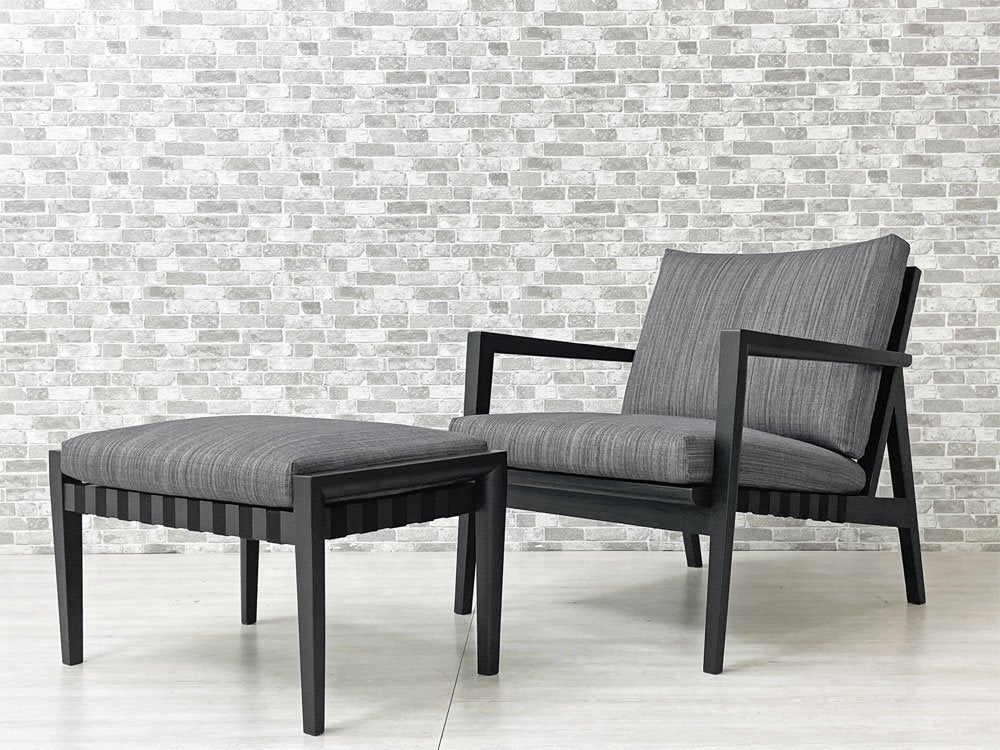 リッツウェル Ritzwell ブラヴァ BLAVA イージーチェア & オットマン セット ラウンジチェア オーク無垢材 ウレタン塗装 ブラック 布張り 定価¥277,200-から 美品 ●