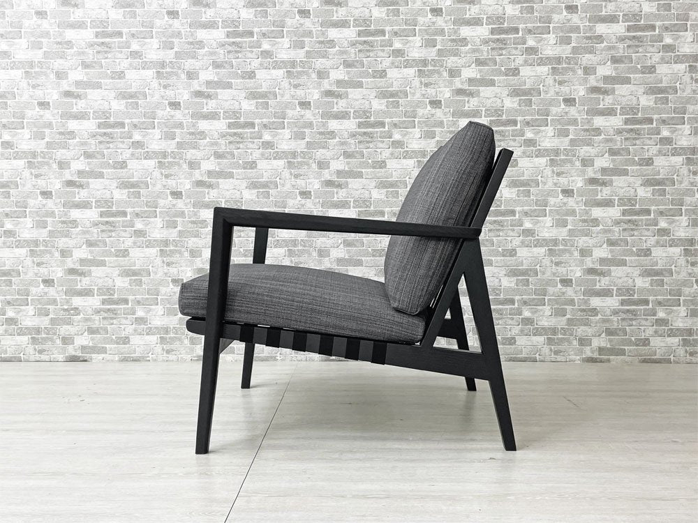 オーク材の力強い杢目を活かしたオイルフィニッシュのフレームに、安定した強度とハリ感のある布ベルトを組み合わせた上品な一脚。