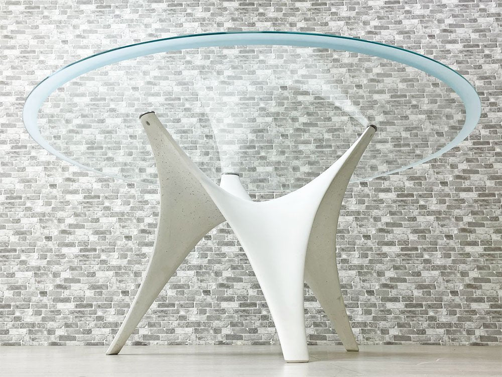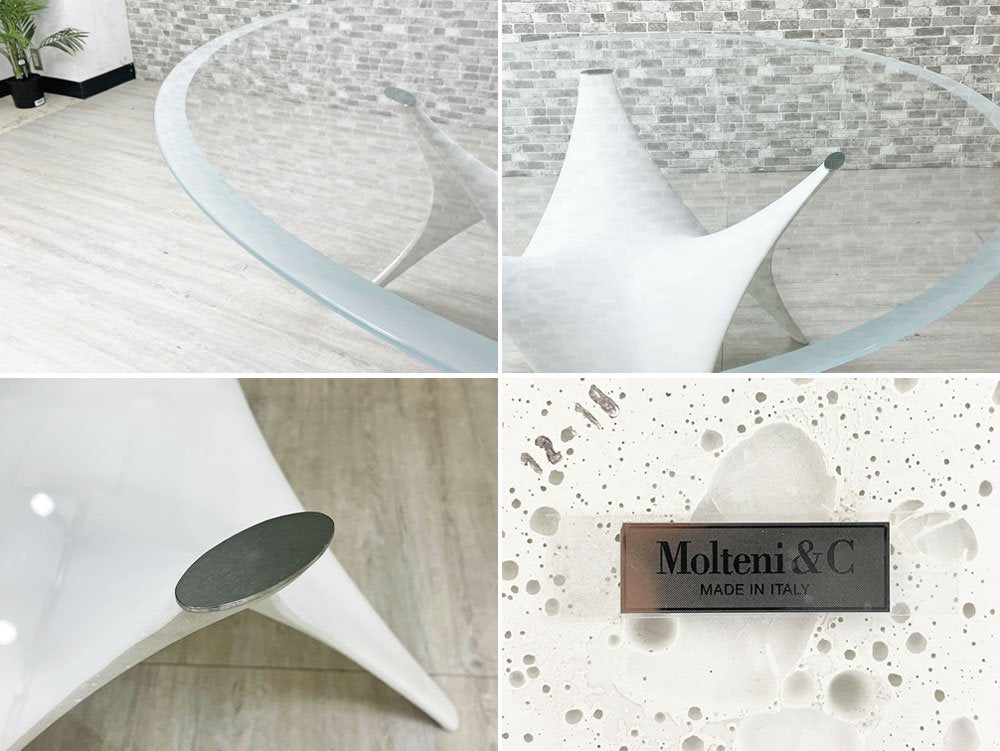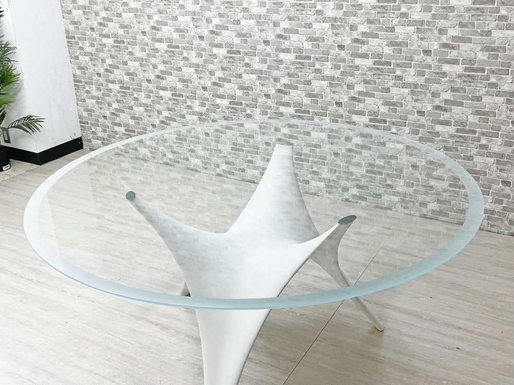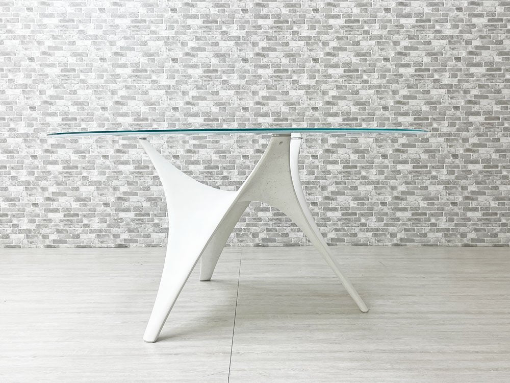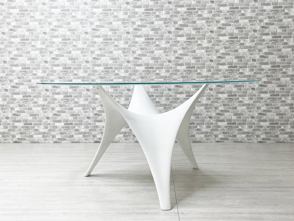 モルテーニ Molteni&C アーク ARC ダイニングテーブル Φ150cm ガラス天板 ホワイトセメント イタリア モダンデザイン 参考価格約114万円 美品 ●