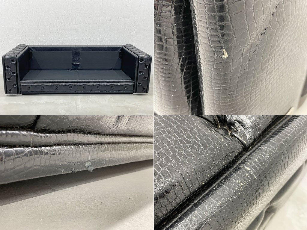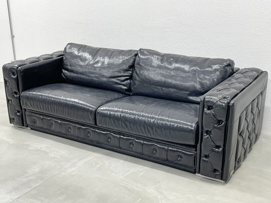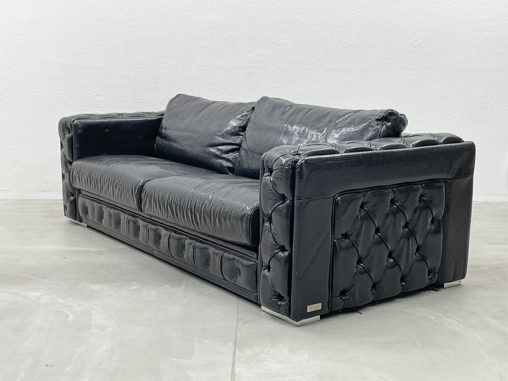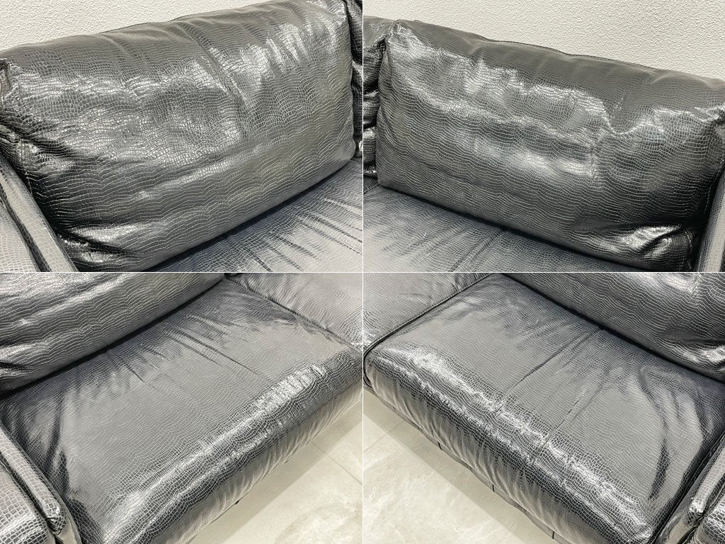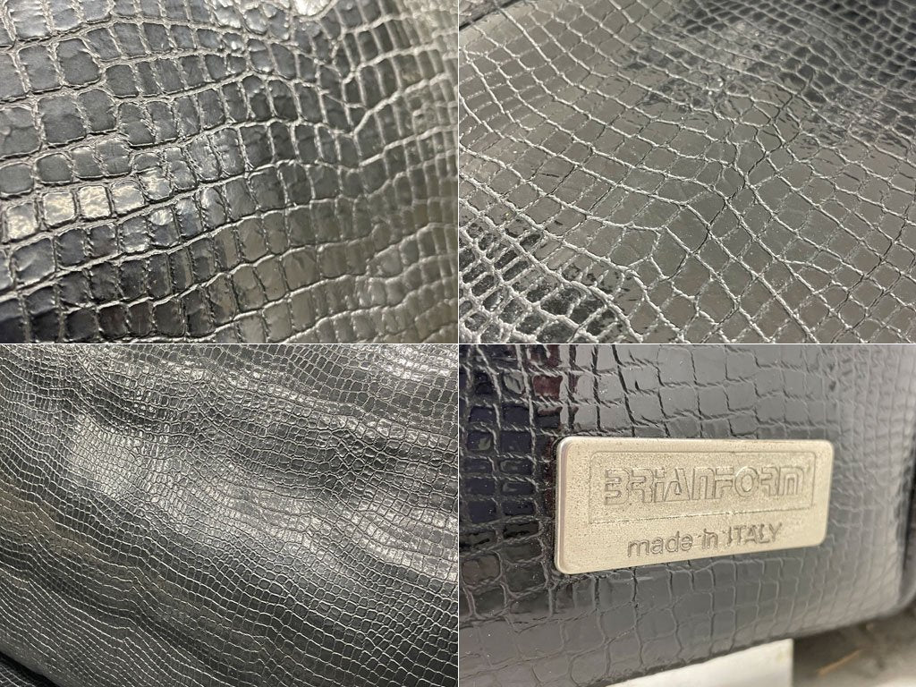 イタリア ブリアンフォルム BRIANFORM レザー 3シーターソファ リザード柄 箔押し Lizard foil stamping 本革 〓