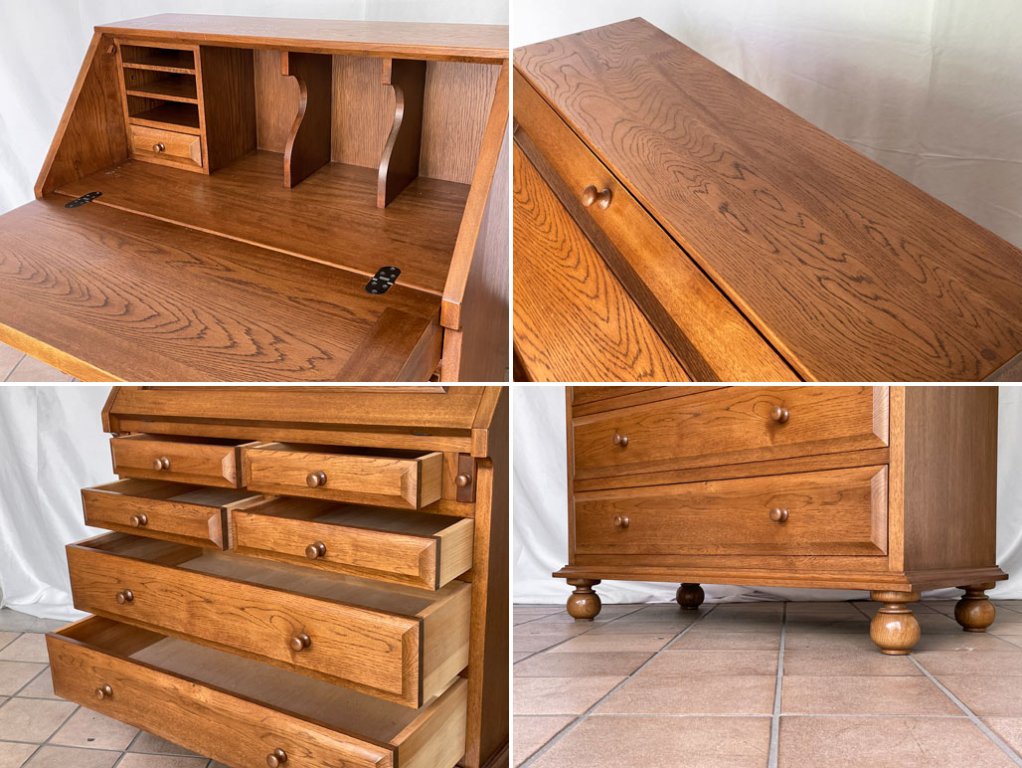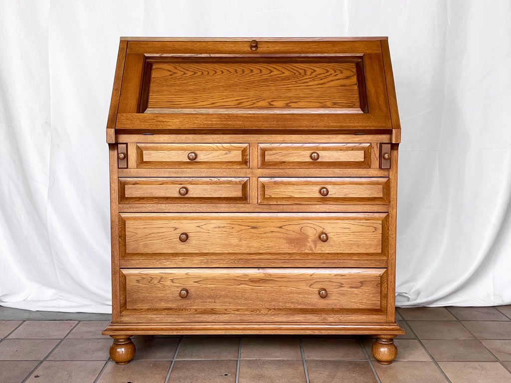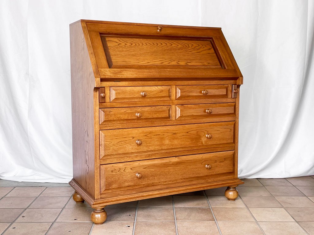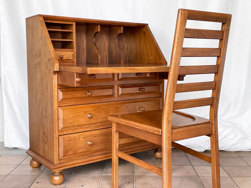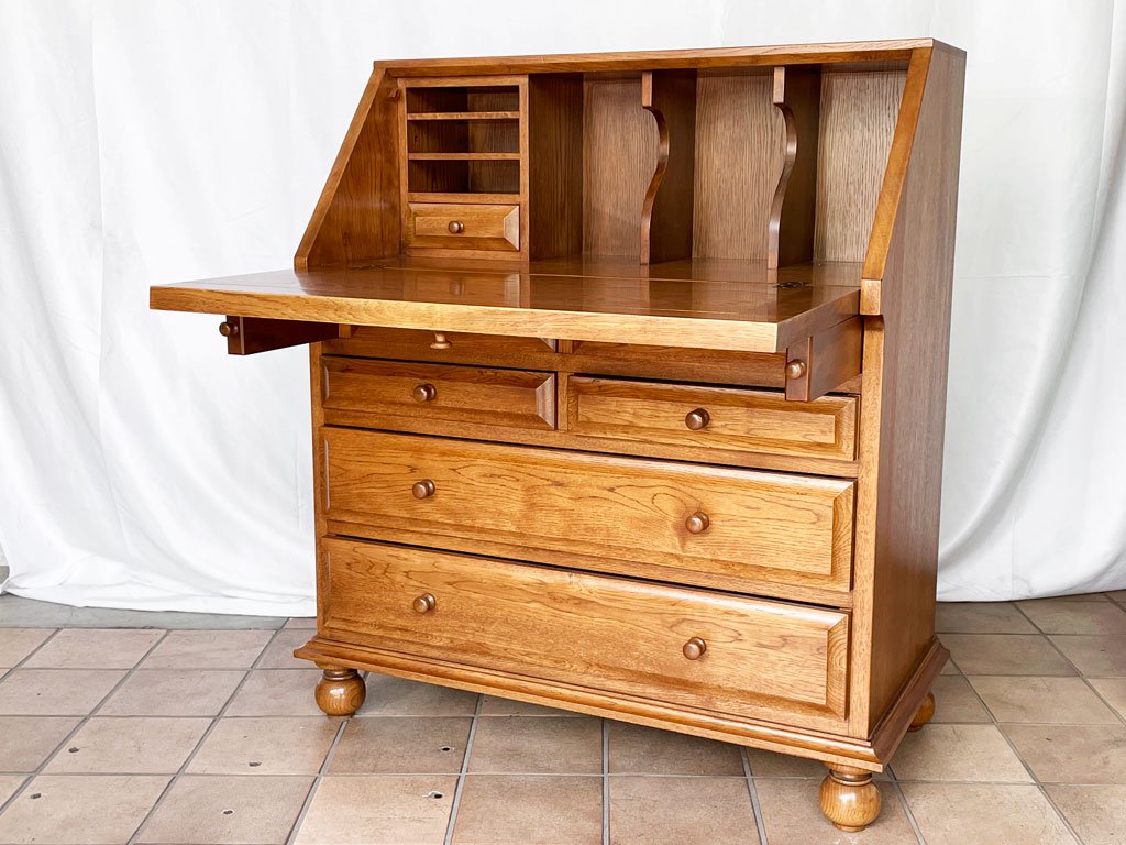 クラシカルデザイン Classical Design ライティングビューロー デスク チェスト ナラ無垢材 W85 アンティークスタイル デザインギャラリー卑弥呼購入品 ◇