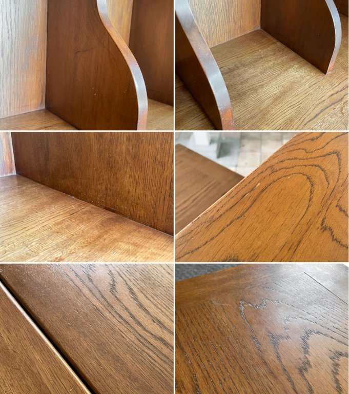 使用に伴い庫内には擦れ、線傷やそれに伴う若干のペイントロスが見られますが、外観には目に付く大きなダメージも無くきれいな状態です。割れやがたつき等使用上問題となる点も無く、中古品としましては概ね良好なコンディションを保っております。脚は当店にて2箇所ボンドによる接着補修を行っております。使用に支障はありませんが、引きずっての移動はお控えくださいませ。