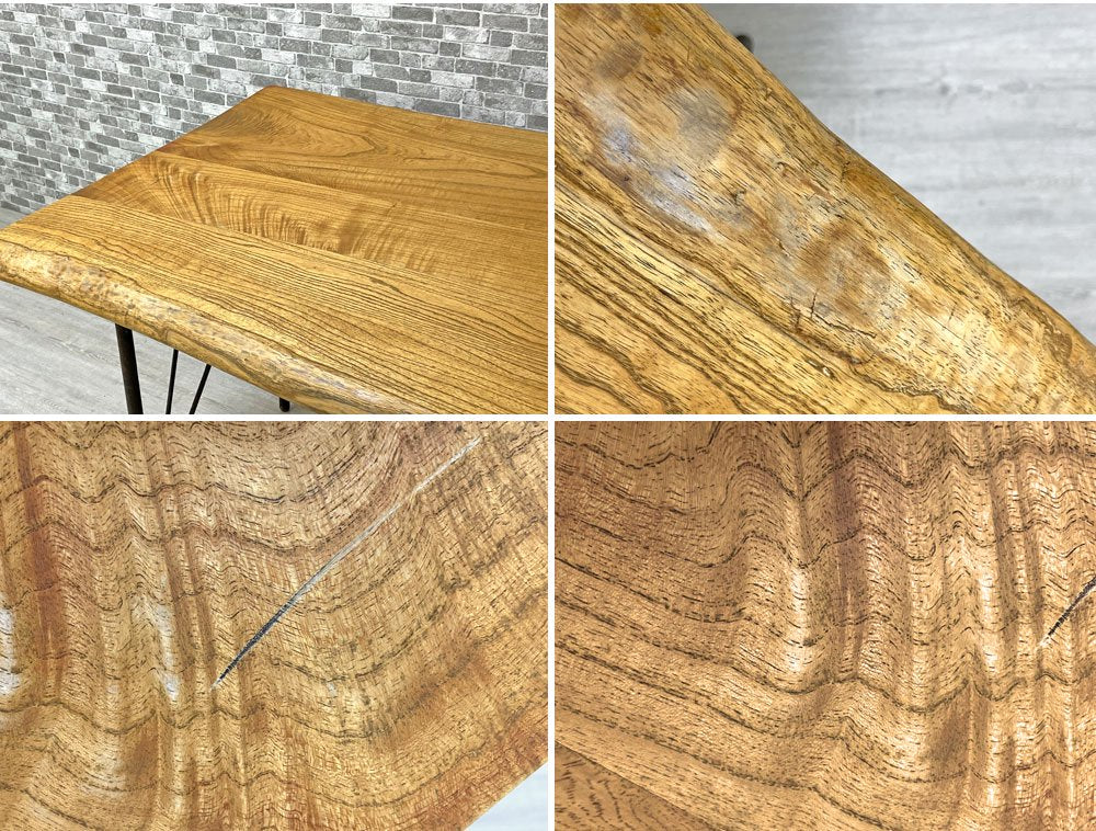 安心が手触りから伝わる4.5?厚のタモ材天板に、スタイリッシュで強度のあるアイアンレッグを組み合わせたリメイクファニチャー。