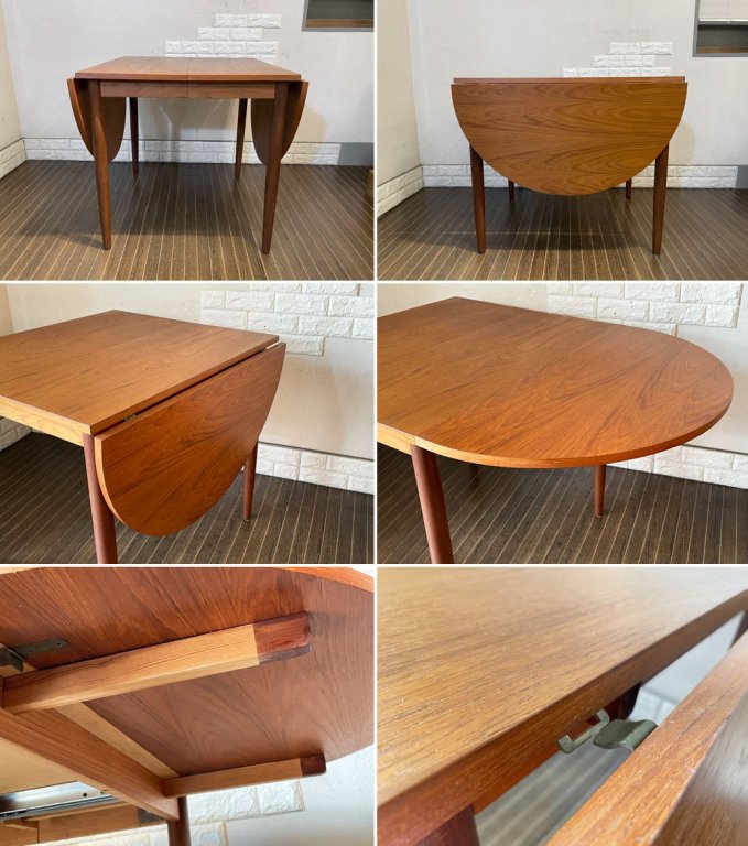 北欧ビンテージ Scandinavian Vintage チーク材 エクステンション バタフライテーブル ダイニングテーブル 9段階伸長 W74-254.5cm 北欧家具 ◎