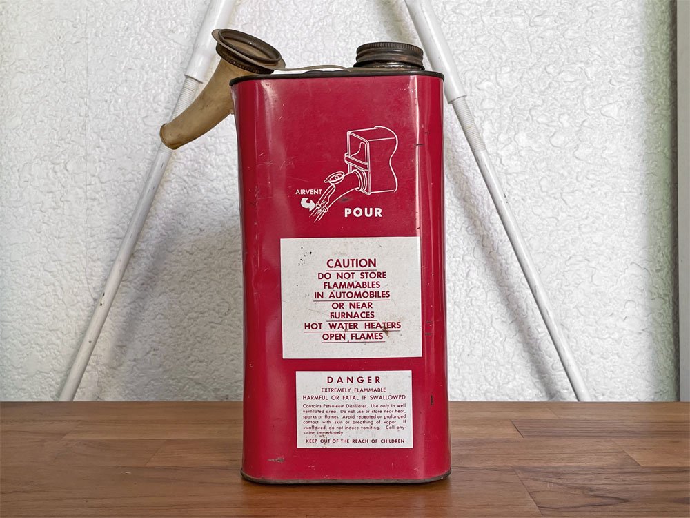 こちらは古き良きアメリカのスポーティなポップさとインダストリアルな風合いが魅力的なビンテージのガソリン缶となっております。
