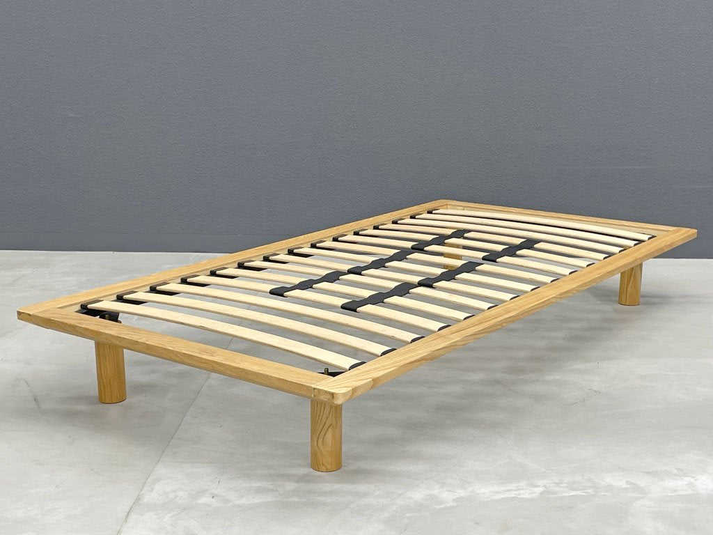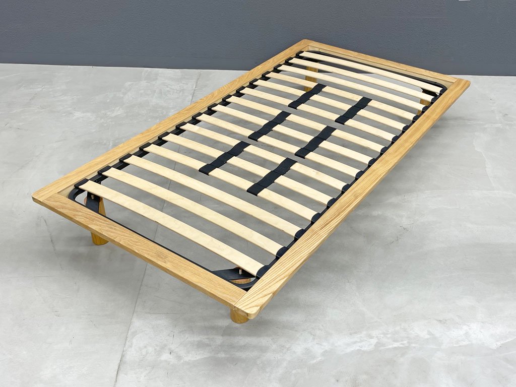 タモ材 アッシュ材 シングルサイズ ベッドフレーム B ウッドスプリング ベルトで硬さ調整可能 ナチュラル