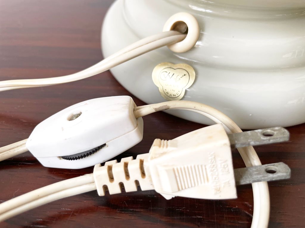 こちらは、ビンテージのお品物品となります。ガラスシェードには若干の小傷やスレ、僅かな黒ずみなどダメージがございます。また、ソケットベースの金物部分にはペイントロスやサビが見受けられますが、ご使用に問題のあるようなダメージや不可動な箇所も無く、これからもビンテージの風合いを楽しみながらご使用頂けます。