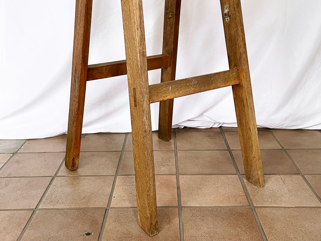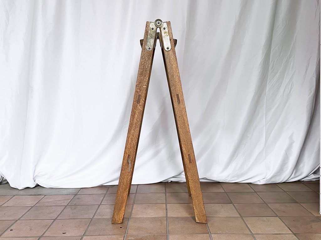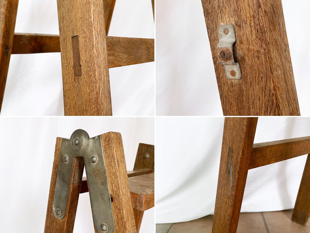 こちらはビンテージ品です。擦れや傷、汚れ等経年なりのダメージが全体的に見られる他、欠けの一部ございますが、味としてお楽しみ頂けるかと思います。また固定金具が欠品しており、脚の開き具合を固定する事はできませんので、予めご承知おきくださいませ。