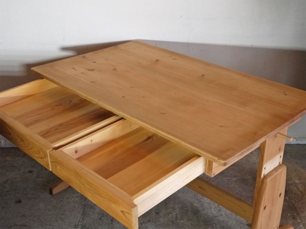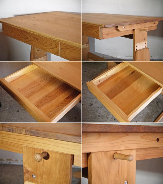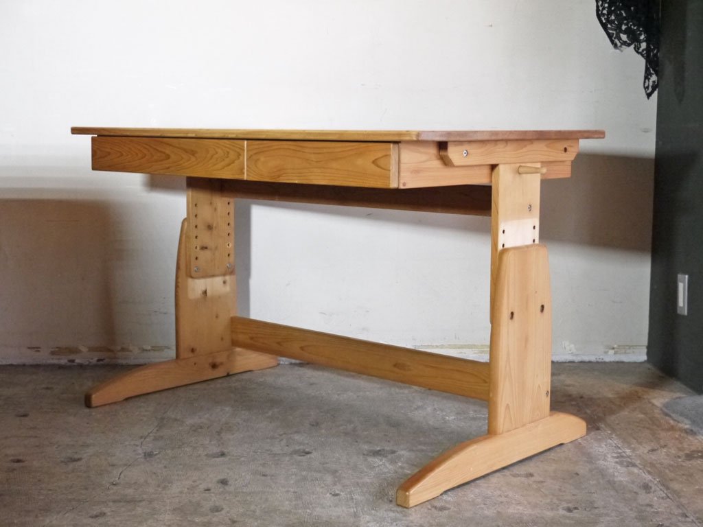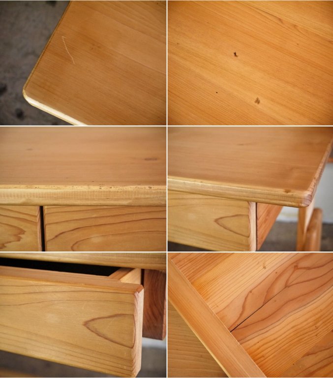 こちらのデスクはパイン無垢材をふんだんに使用し、木目や節もデザインの一部として昇華しています。