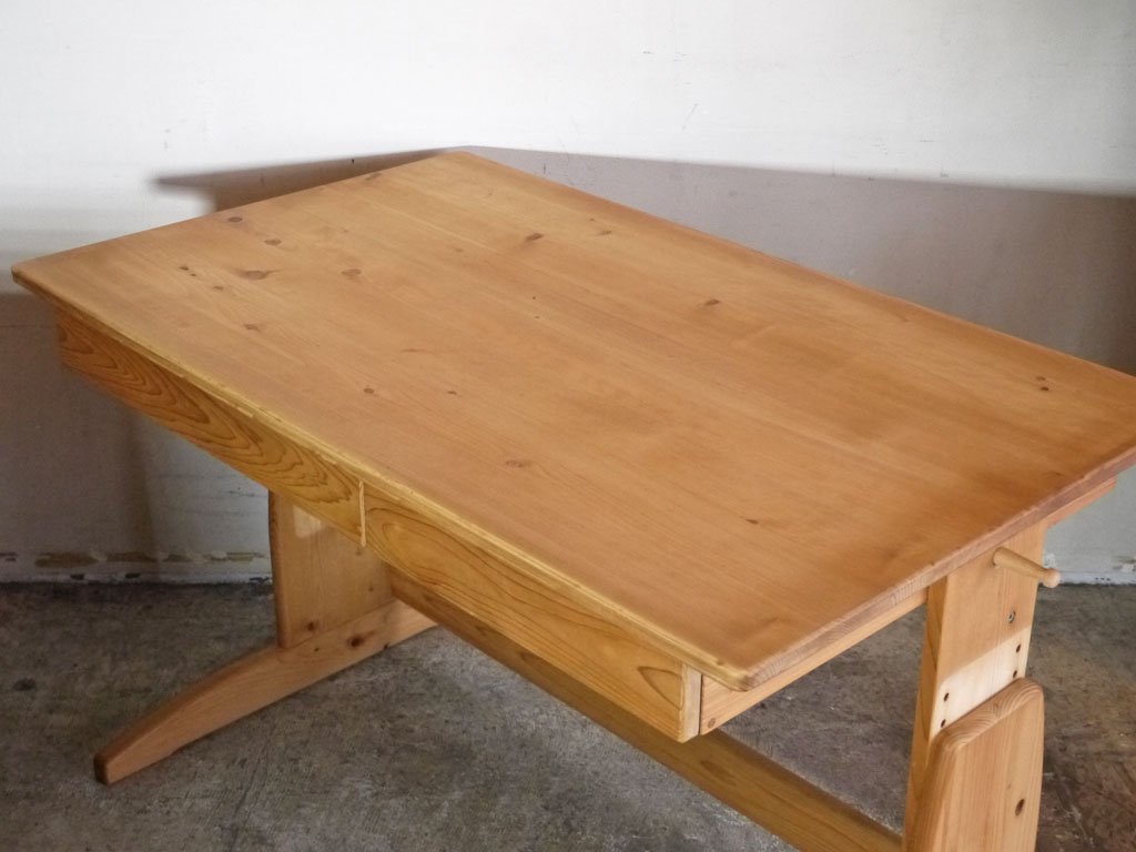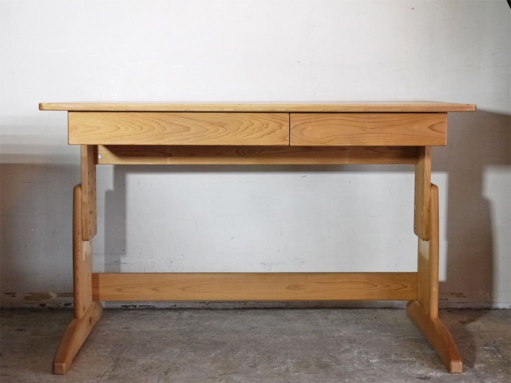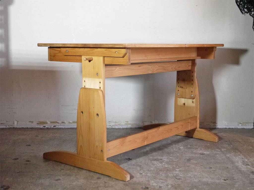 キシル XYL パイン無垢材 デスク ワークテーブル ナチュラルカラー 2ドロワー W115cm 高さ調節機能 ■