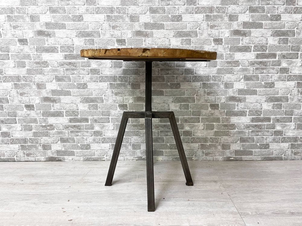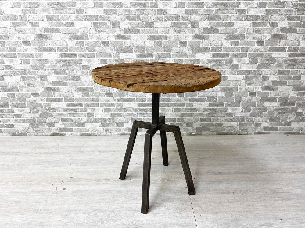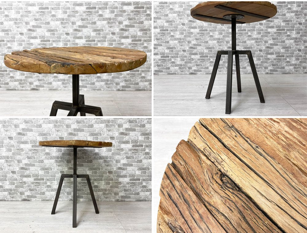 HPデコ H.P.Deco 購入 エルム古材×スチール ラウンド天板 サイドテーブル インダストリアル ●