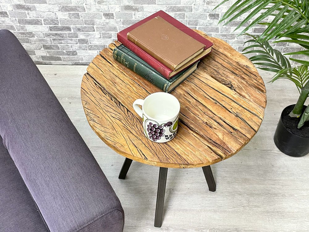 エルム古材×スチール ラウンド天板 サイドテーブル