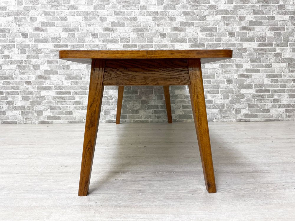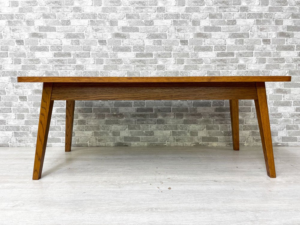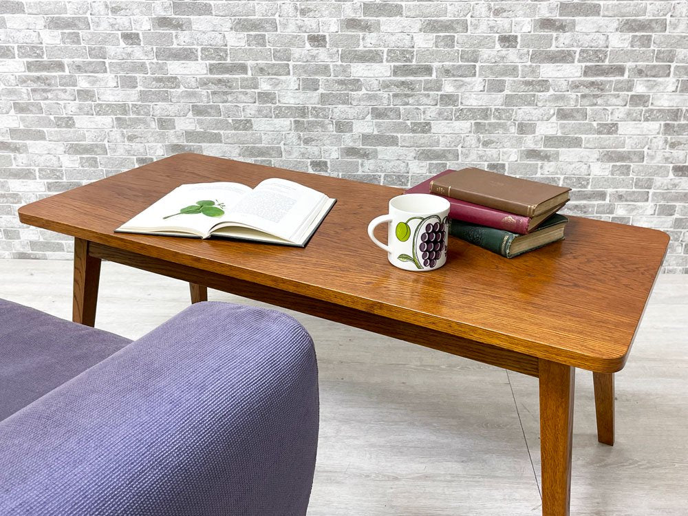 こちらはオーク材突板と無垢材レッグによる飽きの来ないシンプルなデザインの定番ローテーブルです。オーク(ナラ)材は森の木々の中でも最も進化した組織構造があり、故に日本では「森の真打」、西洋では「森の王」という異名を持つ人気の家具材です。