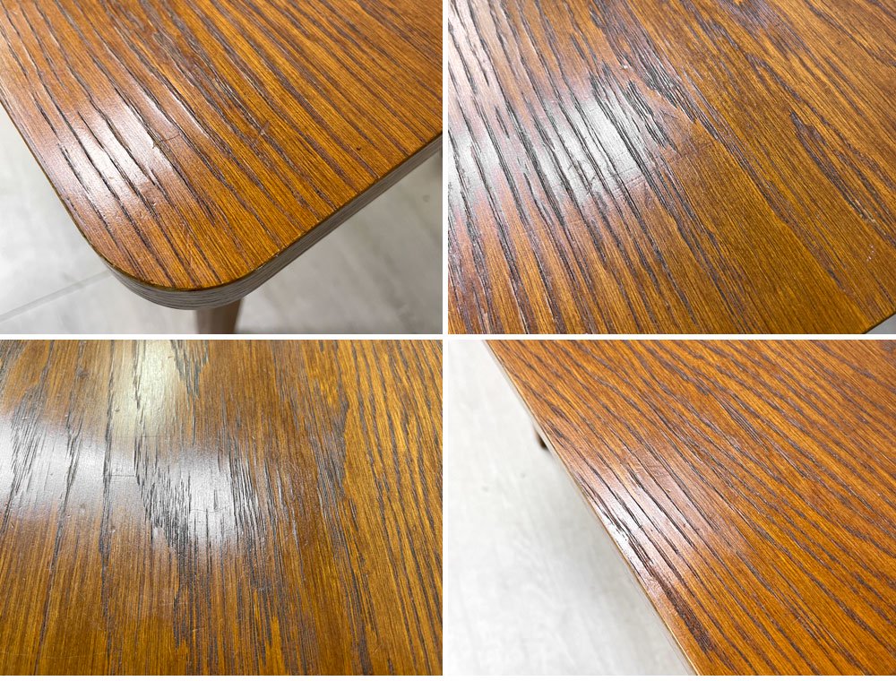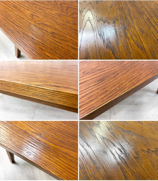 使用に伴う擦れ傷の他、細かな打痕、塗装表面の色抜けや天面全体的にスクラッチが散見されやや使用感を感じさせますが、著しく美観を損なうものではございません。ご使用に問題となるダメージは無く、今後とも雰囲気をお楽しみ頂けるコンディションを保っております。