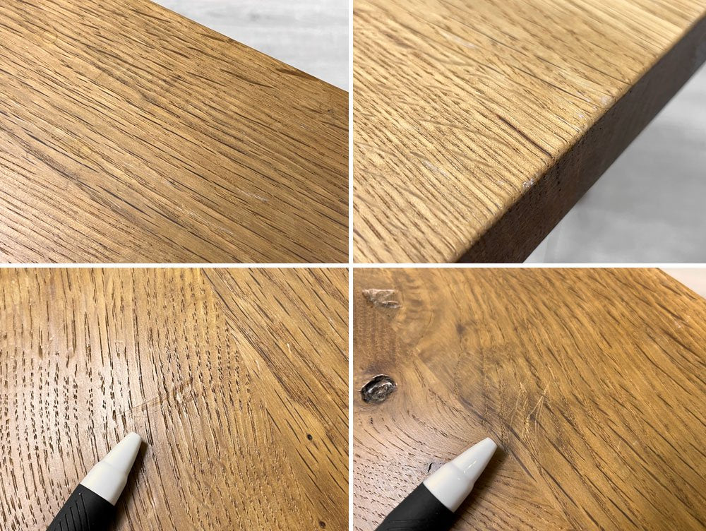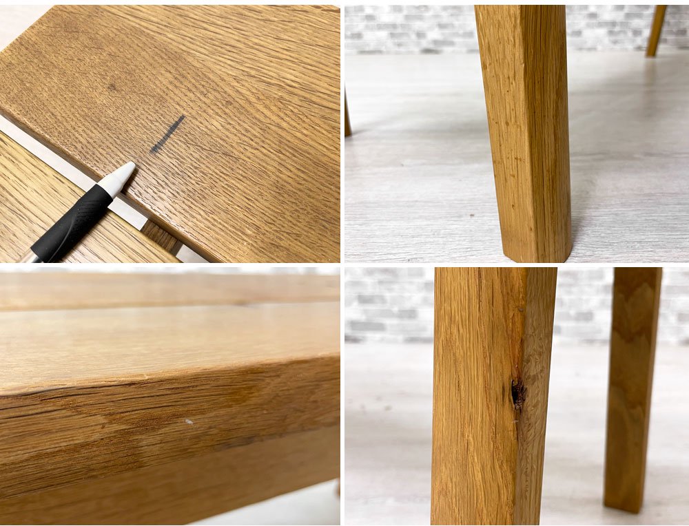 使用に伴う擦れ傷の他、スクラッチ、うっすらとした染み、ペン痕や着色等はございますが大きく目立つものではございません。グラつきといったご使用に問題となるダメージは見られず、今後とも気持ち良くお使い頂けるコンディションを保っております。