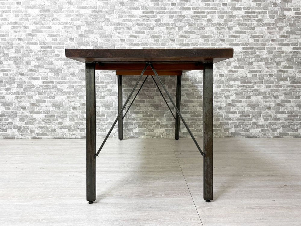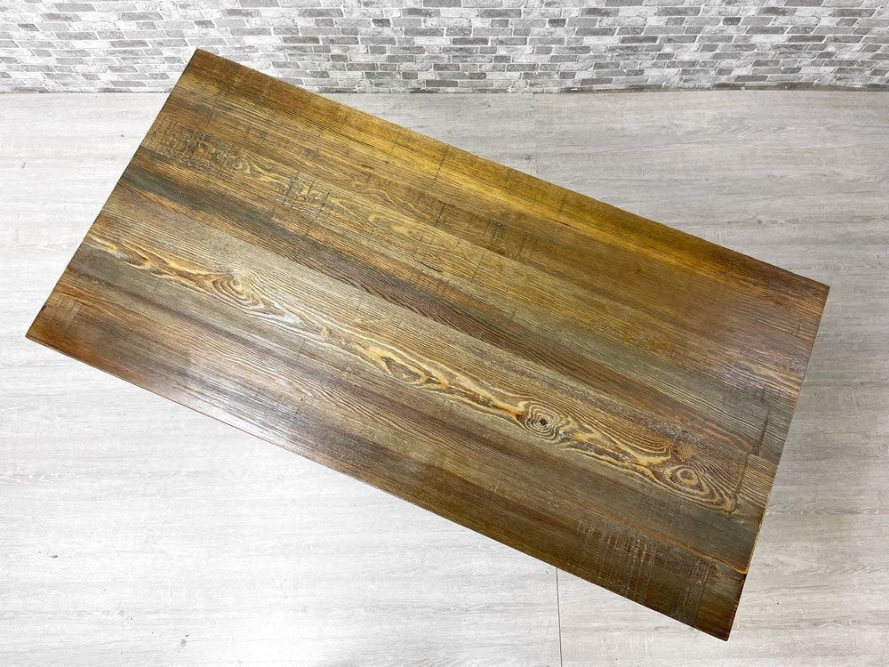 こちらは同社の人気シリーズ『 シノン / CHINON ダイニングテーブル 』になります。ヨーロッパで使われていた作業台からイメージされた趣あるダイニングテーブル。杉古材とアイアンを組み合わせ、シックで大人びた雰囲気を醸し出すインダストリアルデザインを完成させています。