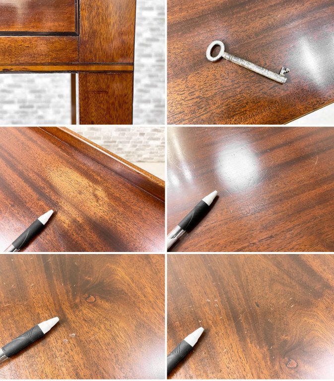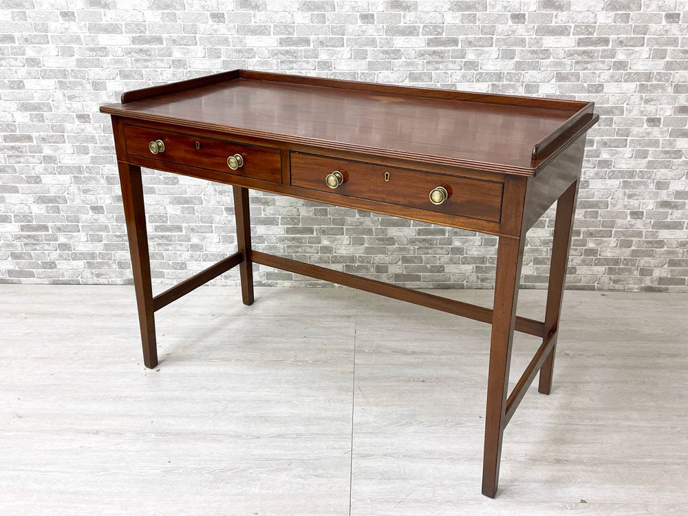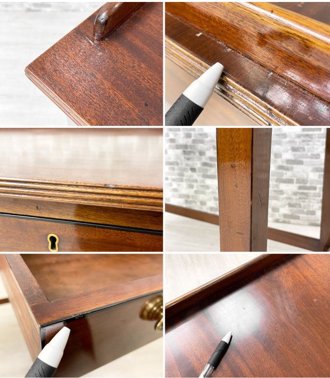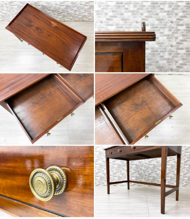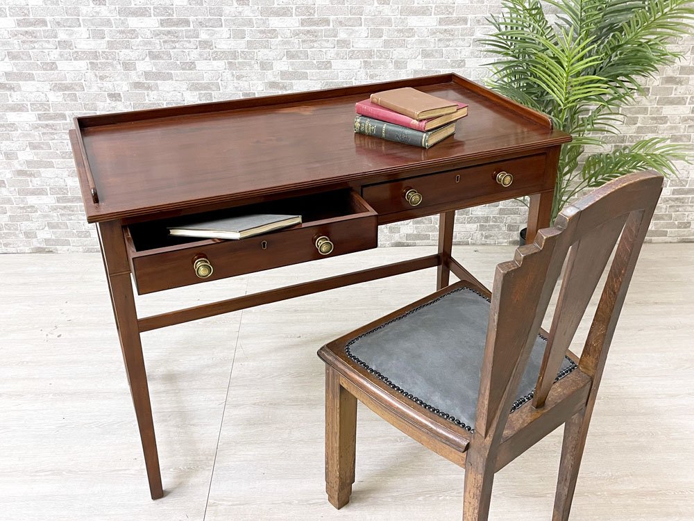 英国家具の特徴でもあるマホガニー材がふんだんに使用されたデスクとなります。