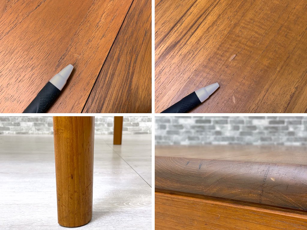 こちらはビンテージ品となります。使用に伴う細かな擦れ傷の他、細かな打痕やスクラッチ、天板縁を中心に線傷がいくらか見られるものの大きく風合いを損なうものではございません。また補助天板は仕様としては恐らく2枚あったものかと思われますが、1枚欠品している形となります。