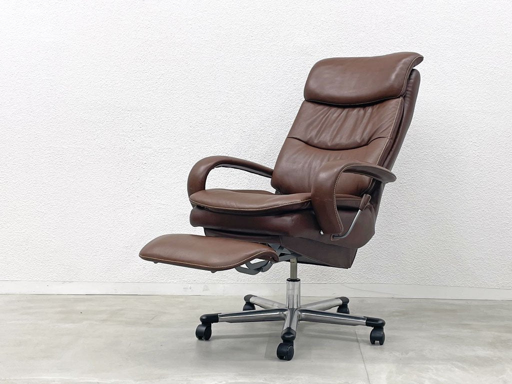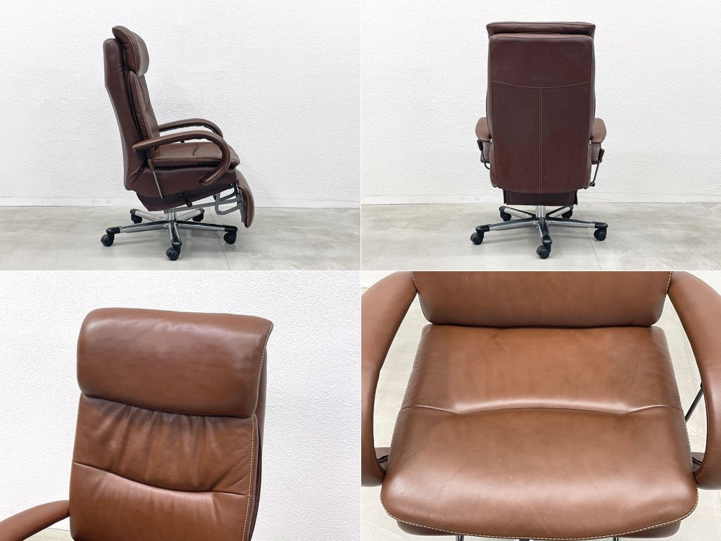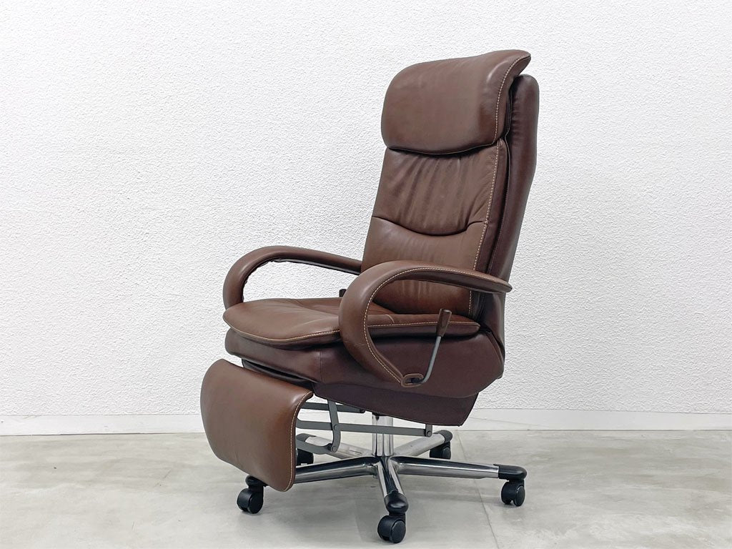 こちらはハイクラスな本革のフットレスト付きハイバックデスクチェアとなります。