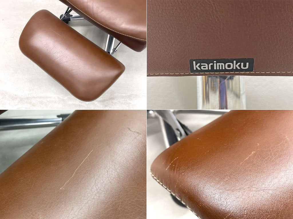 カリモク Karimoku 本革 フットレスト付き ハイバック デスクチェア XU7700 ブラウン ピュアオーク リクライニング エグゼクティブ チェア 参考292,600円 〓