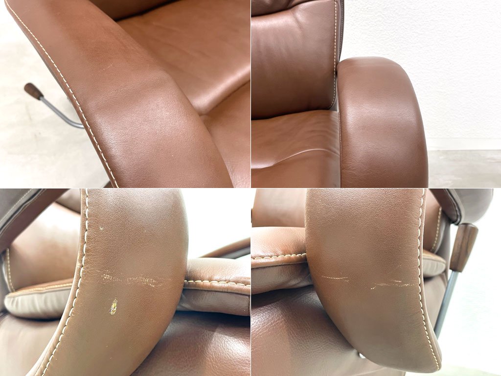 バックレストとシートには微かに擦過によるライン傷がございます。フットレストには若干目につく擦過傷がございますが、通常の使用に問題のあるようなダメージではありません。