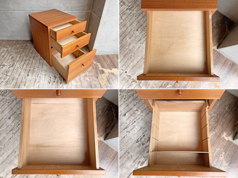 ジャパンビンテージ Japan Vintage デスクキャビネット チェスト チーク材 抽斗3杯 北欧スタイル ♪