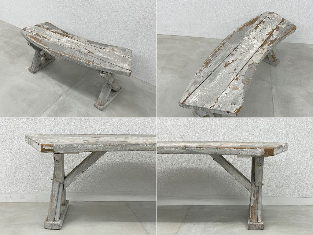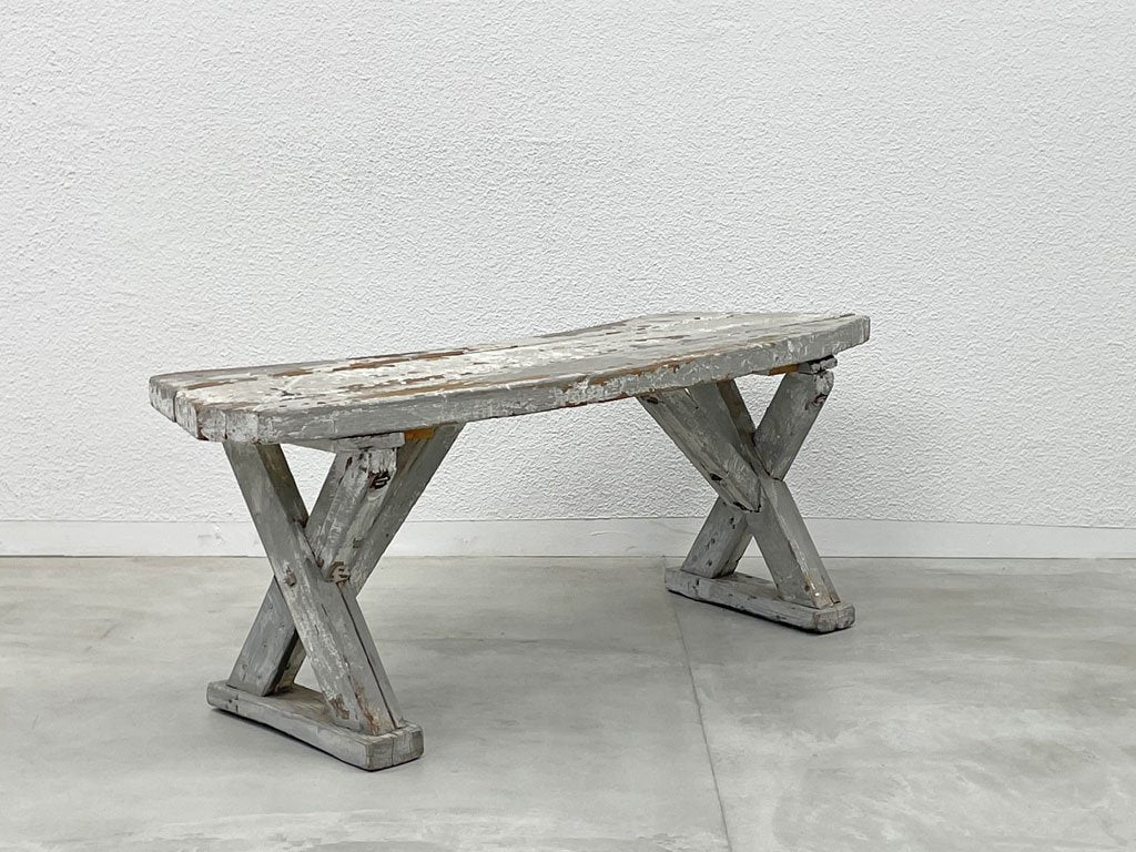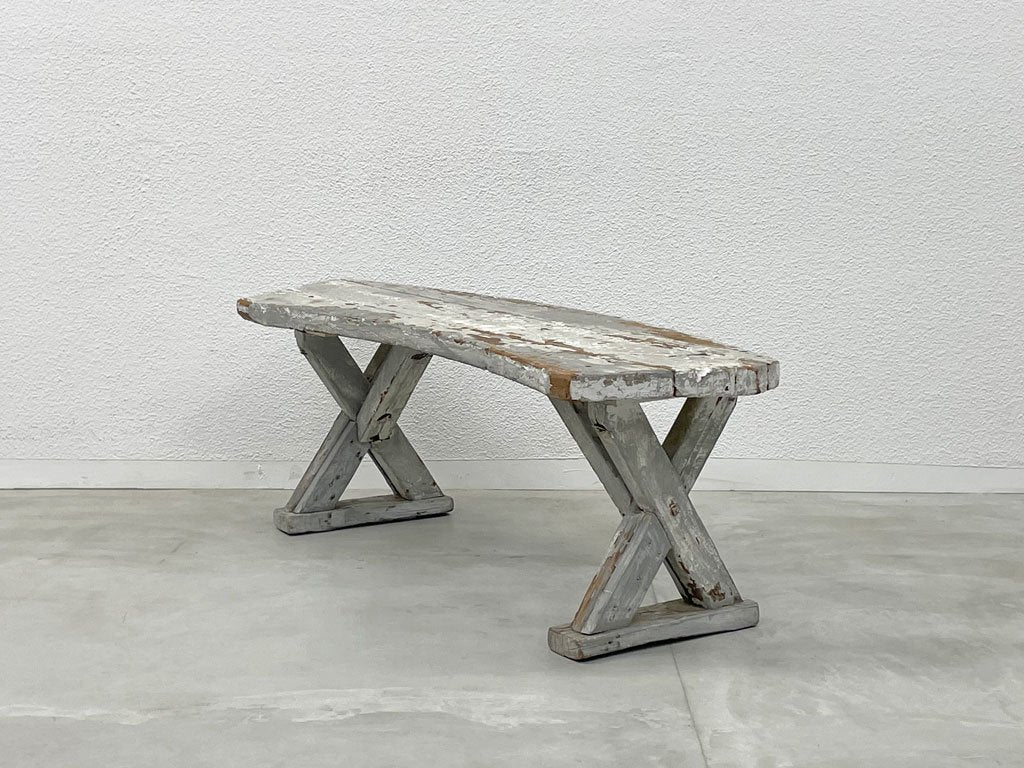 フランスビンテージ シャビーシック ペインテッド ベンチ French vintage painted bench スツール 花台 プロカント 古材 〓