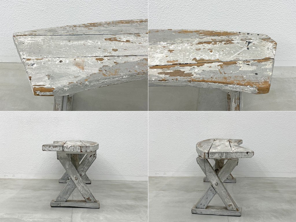 ペイントの剥がれや木材の経年した風合いは元々のお品物となります。