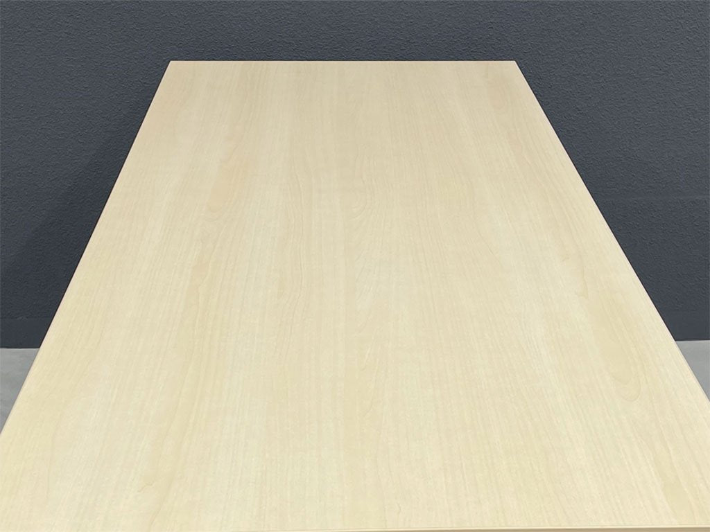 プリント合板ながら、デザインの中に反り防止用のしっかりとした梁を取り入れ、PCや書類など比較的重量があるものをおいても撓まない強固なデスクとなります。