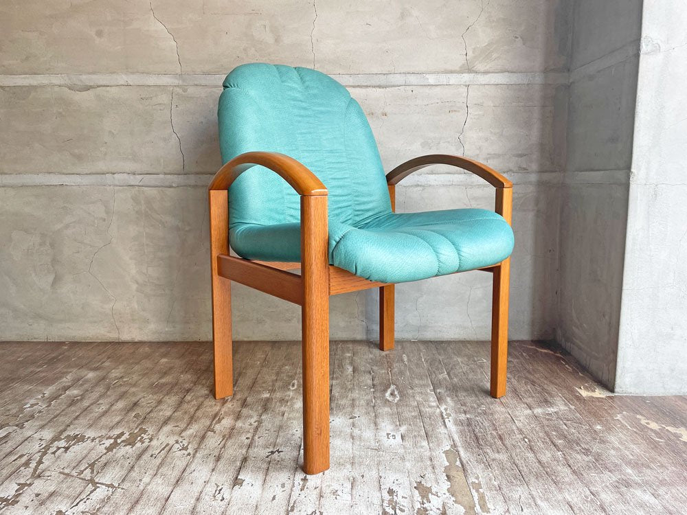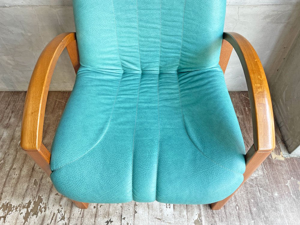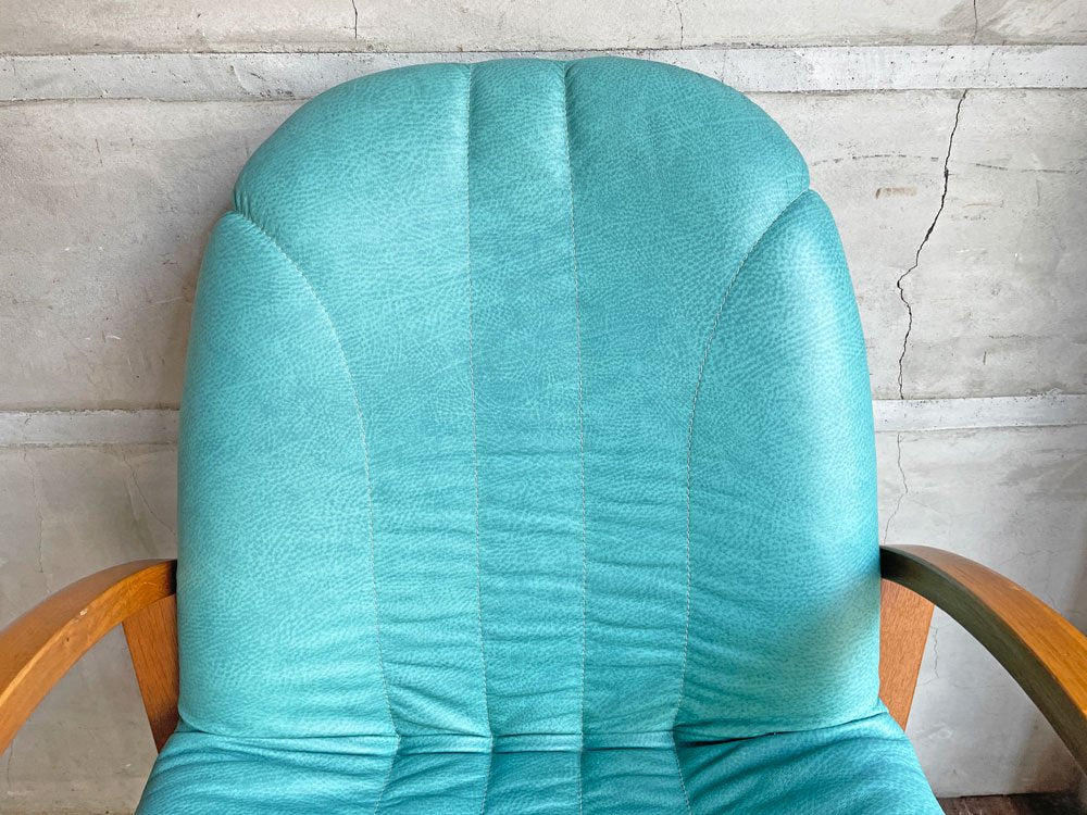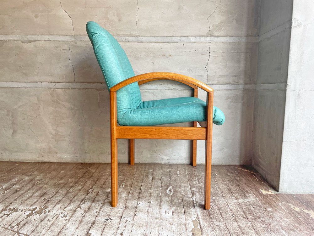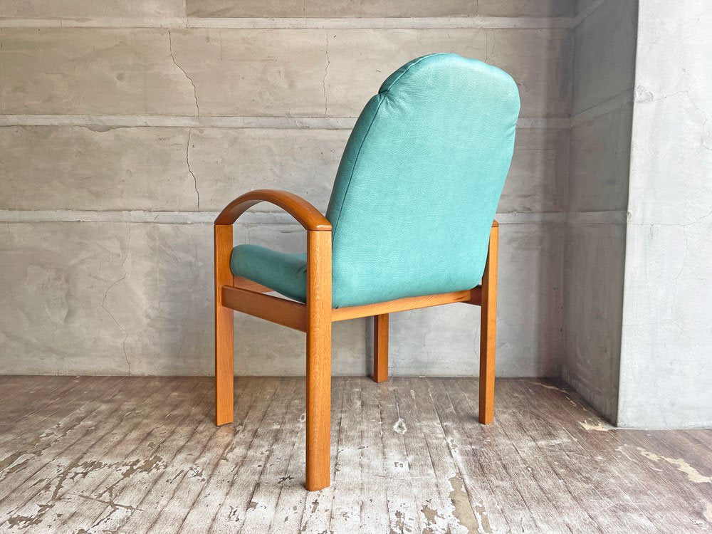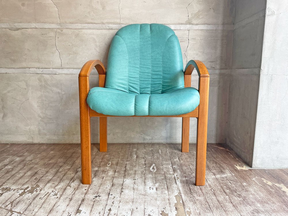 フクラ HUKLA ライン RHEIN アームチェア ダイニングチェア レザー ターコイズブルー オーク材 ナチュラルスタイル B ♪