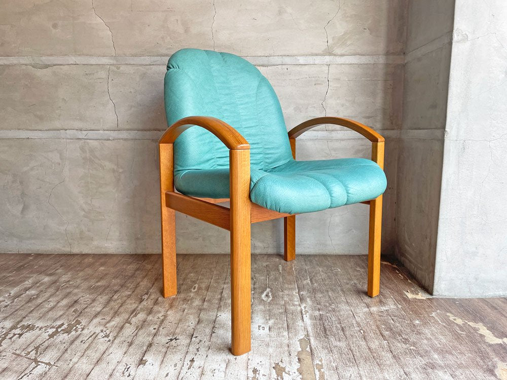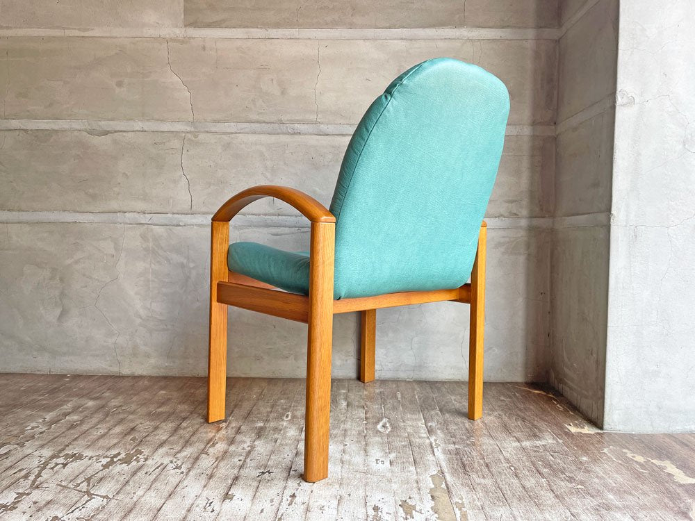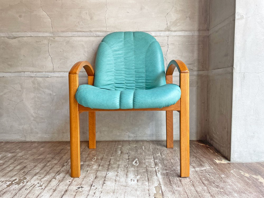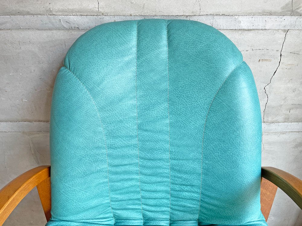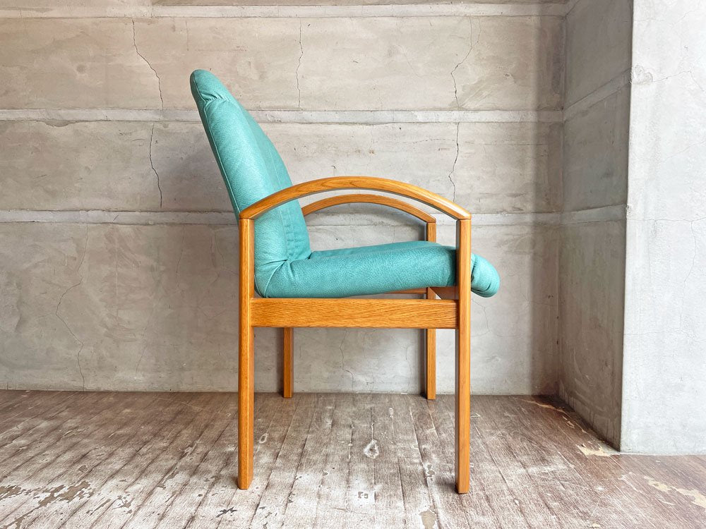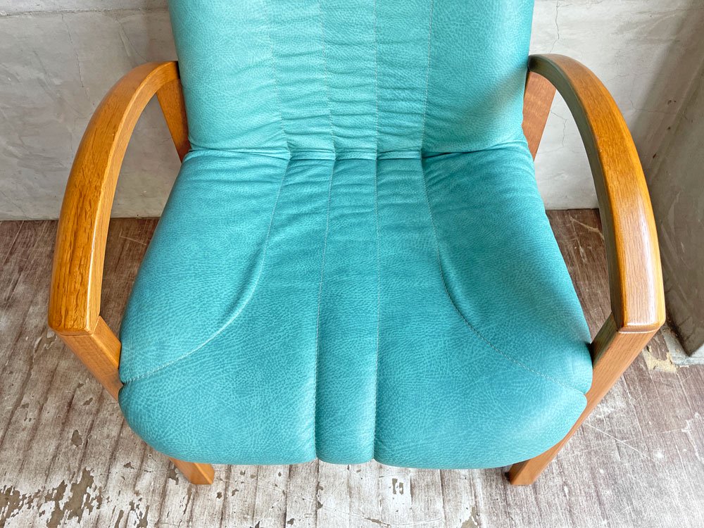 フクラ HUKLA ライン RHEIN アームチェア ダイニングチェア レザー ターコイズブルー オーク材 ナチュラルスタイル A ♪
