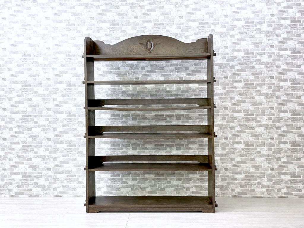ジャパンビンテージ Japan Vintage 木味 ブックシェルフ オープンシェルフ 本棚 楔留め 幅122cm 飾り棚 オープンラック 昭和レトロ 和家具 古家具 ●