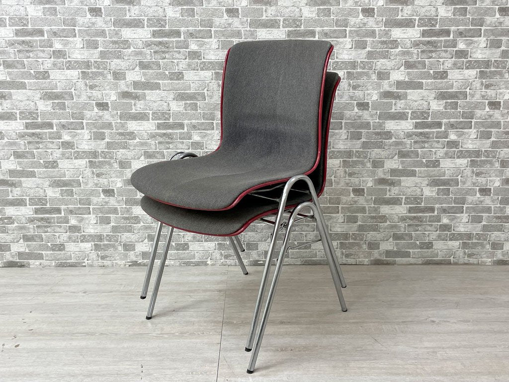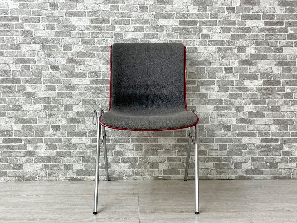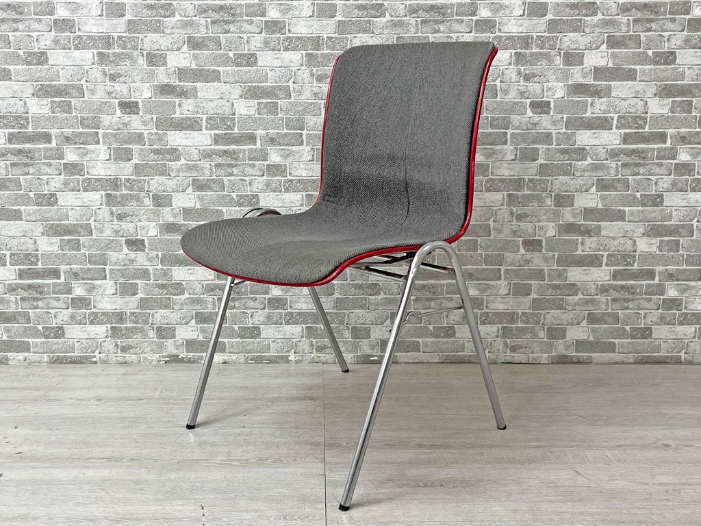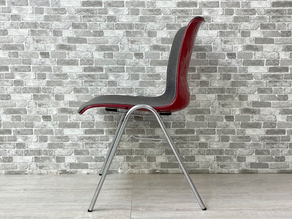 FRP サイドチェア 別注 レッドシェル グレーファブリック スタッキングベース