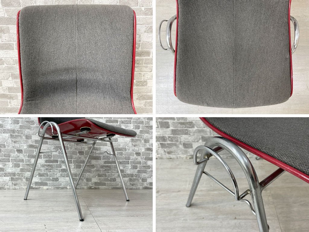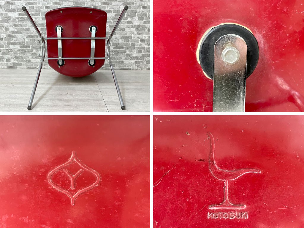 コトブキ KOTOBUKI 柳宗理 FRP サイドチェア 別注 レッドシェル グレーファブリック スタッキングベース ジャパニーズミッドセンチュリー ビンテージ Lowタイプ A ●