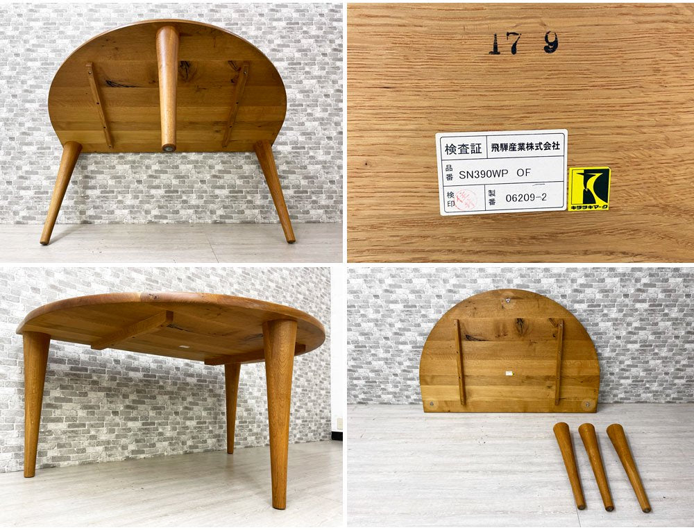 飛騨産業 HIDA 森のことば 半円形テーブル ダイニングテーブル オーク無垢集成材 W150cm SN390WP 佐々木 敏光 定価¥217,800- ●