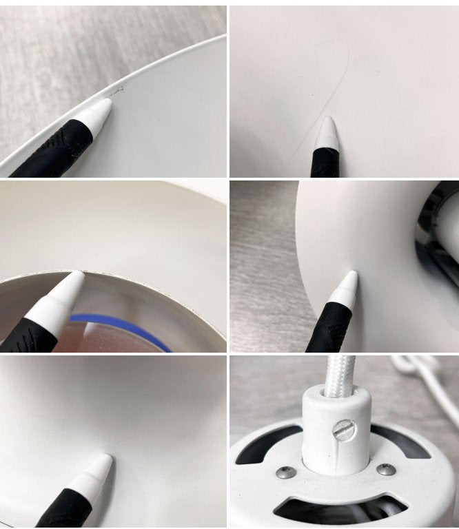 使用に伴いシェードに軽微な擦れや打痕、極僅かな歪みがございます。また、ソケットカバーに僅かな黒ずみ等はございますが、いずれも美観を損ねるものではございません。その他機能に問題ある箇所などは特にございません。