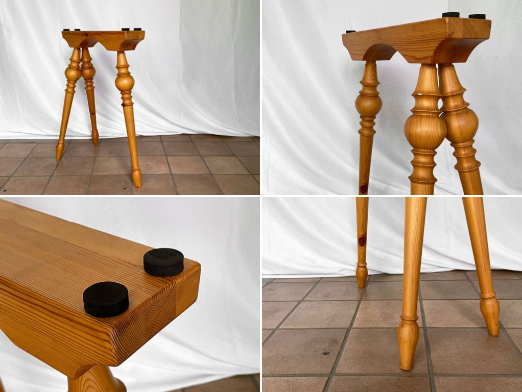 パイン材の風合いが素敵な3本脚のレッグは、ビクトリアン様式の優美な佇まいでありながら、素朴なカントリースタイルを想い起させる目を惹くアイテム。