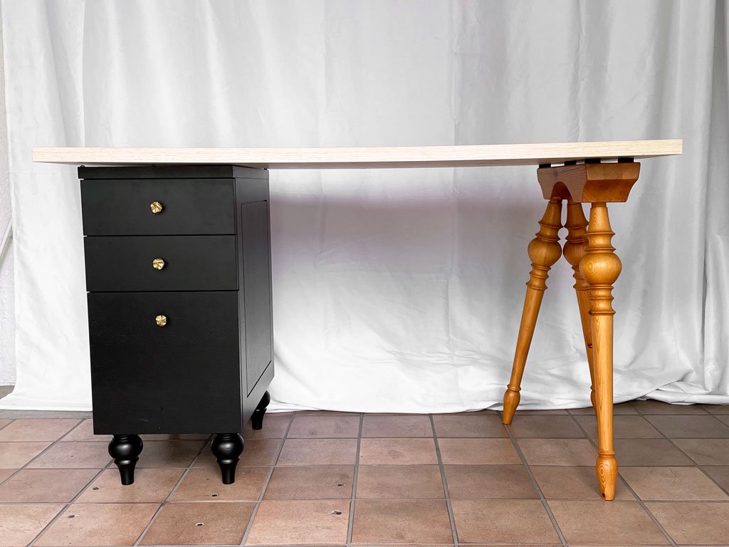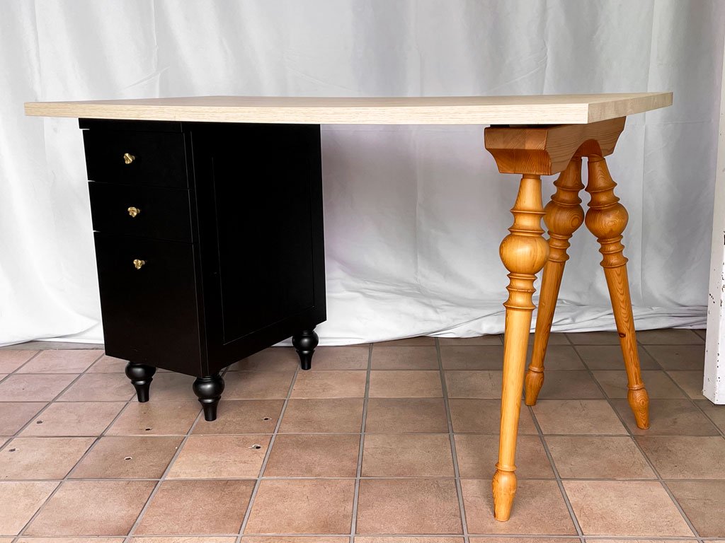 リメイク家具 ビクトリアンレッグ デスク ワークテーブル キャビネット パイン材 カントリースタイル アトリエ ヨーロピアン ◇